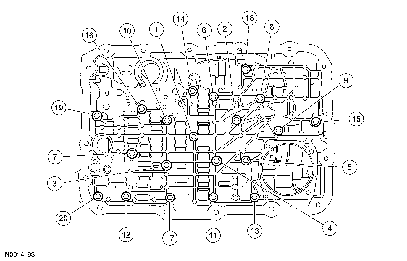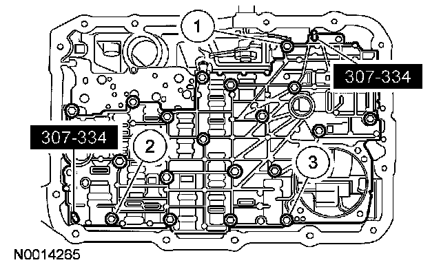 Install the solenoid body. Tighten bolts in the sequence shown.
