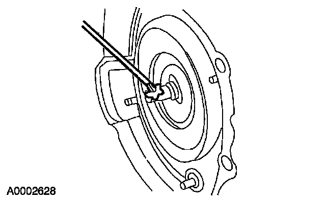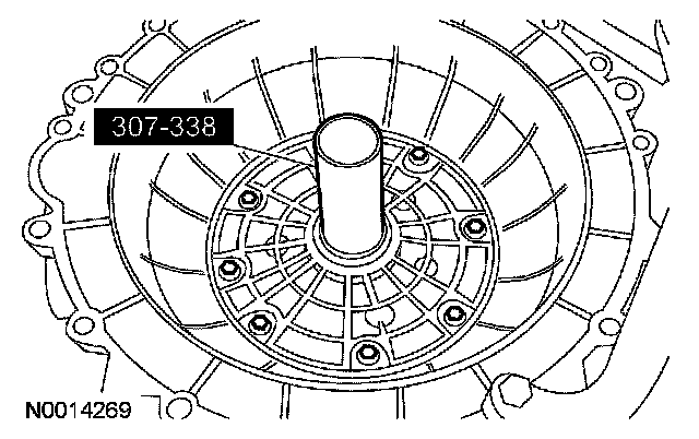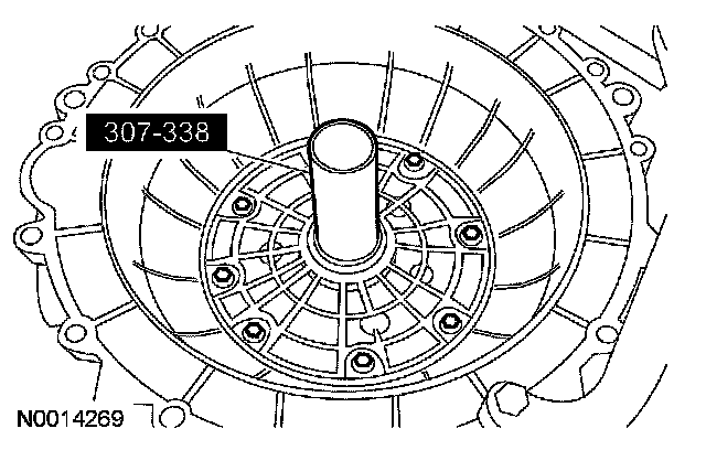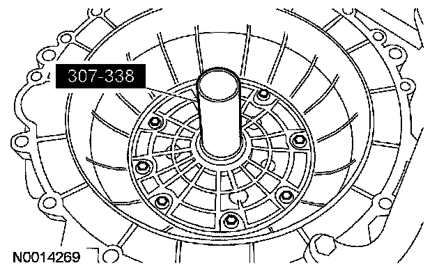 97. CAUTION: Inspect the transmission case bore to make sure it is free of foreign material and not damaged. If damaged, transmission leak may occur.