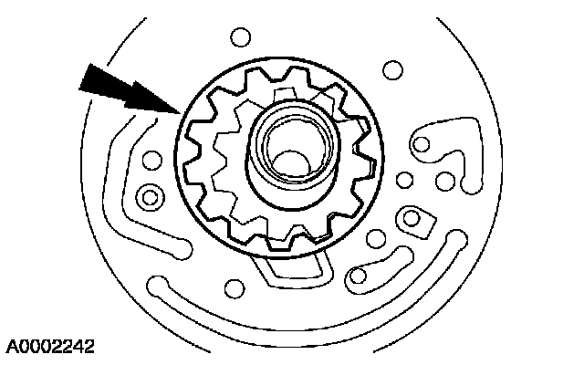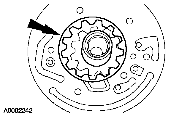 6. Remove the drive gear O-ring seal and discard. Inspect the fluid pump gears for cracks and scoring.