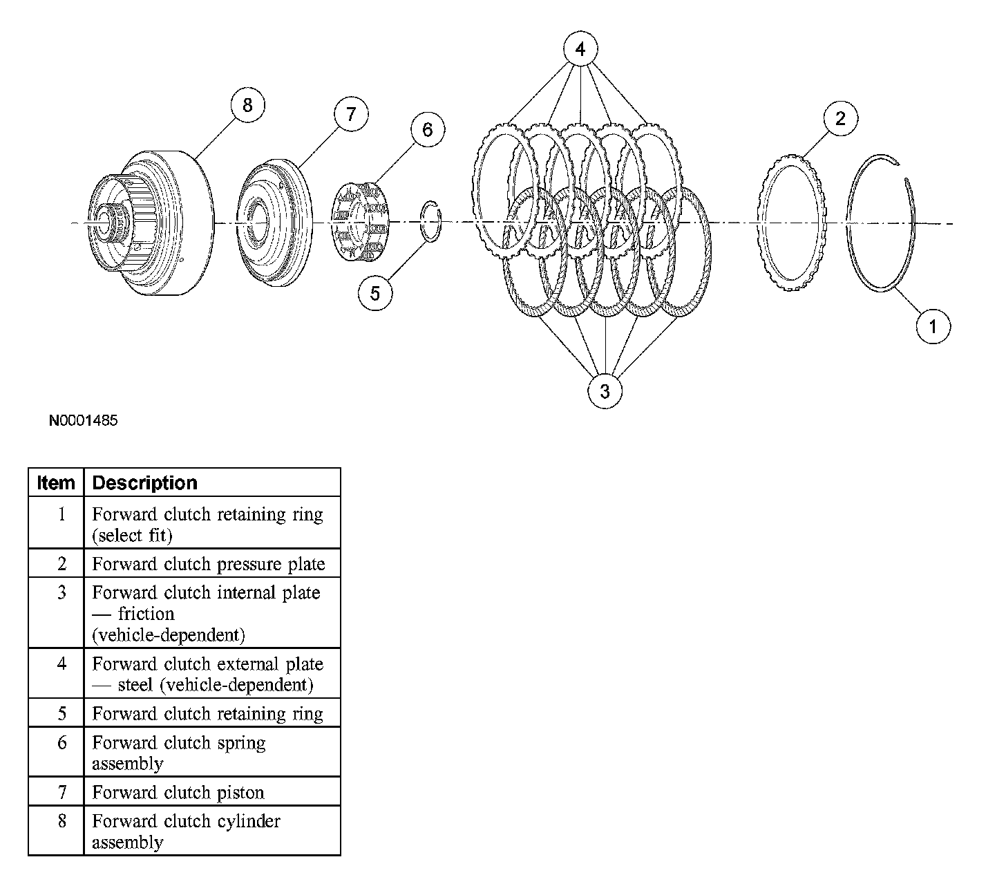 8. CAUTION: The forward clutch friction plates are directional and must be installed with grooves pointing counterclockwise.
