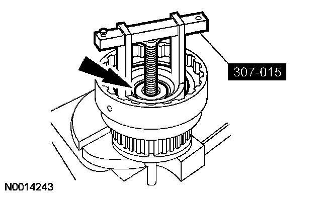 7. CAUTION: Do not fully depress the clutch spring compressor or damage to the spring retainer may occur.