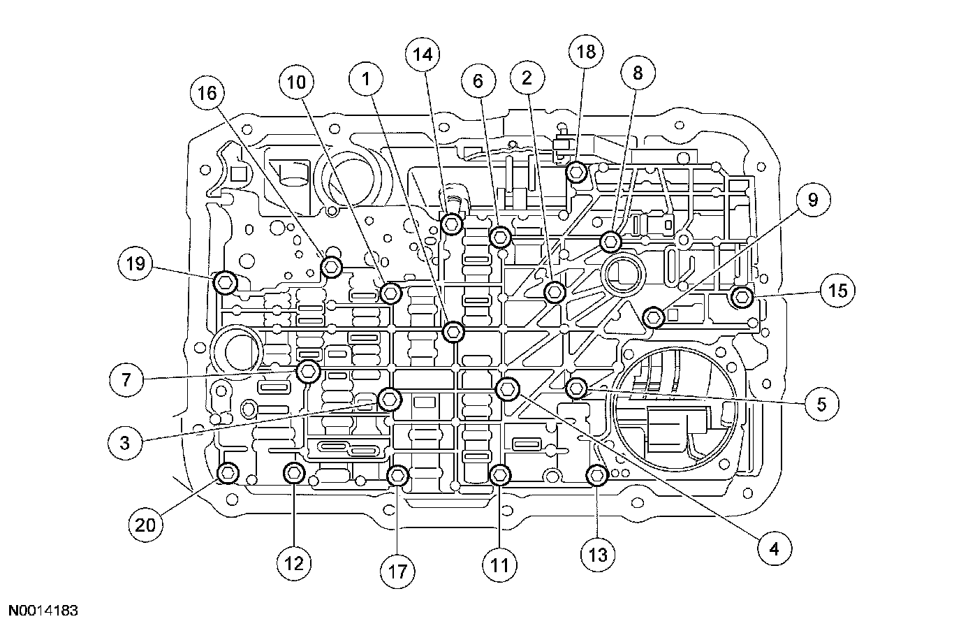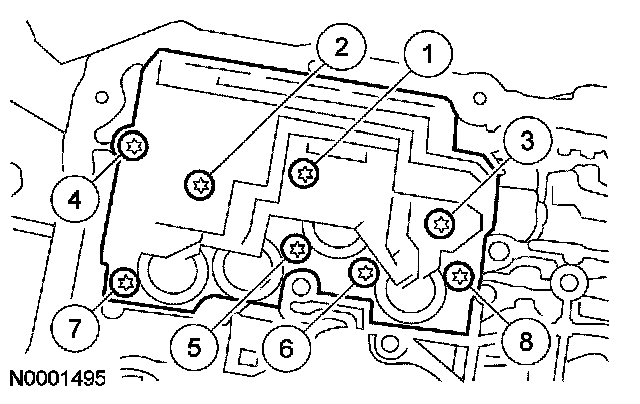 Install the solenoid body. Tighten the bolts in the sequence shown.