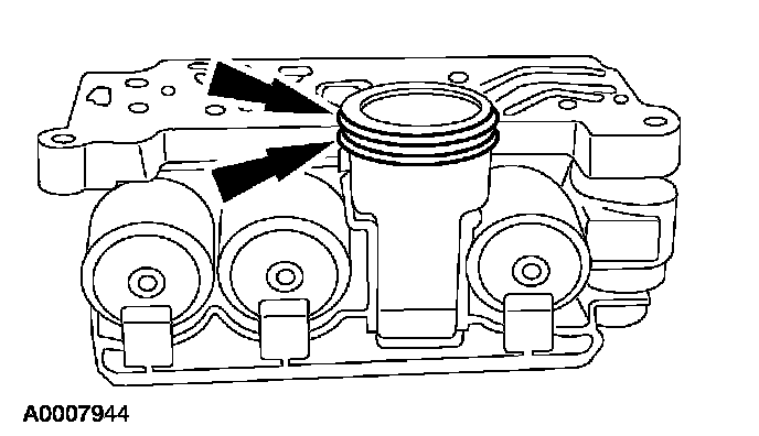 7. Install new O-ring seals on the solenoid body connector. Lubricate the O-ring seals with clean automatic transmission fluid.
