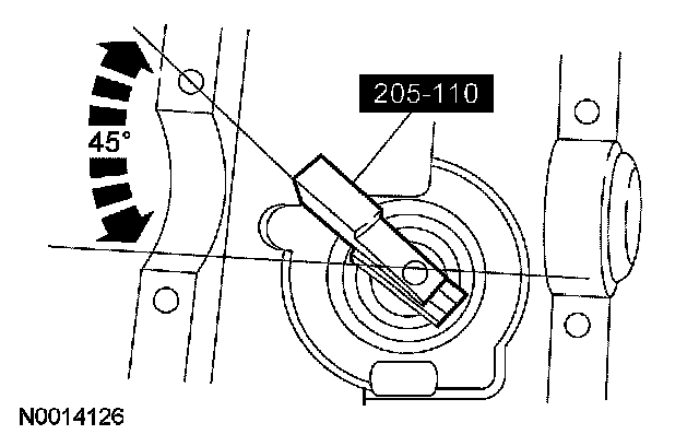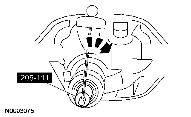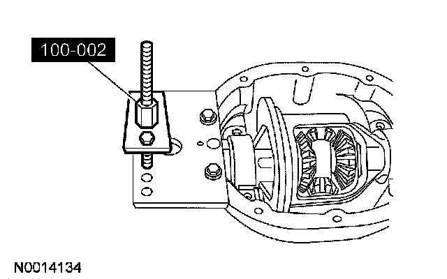 Rotate the special tool several half turns to seat the drive pinion bearings. Position the special tool as shown.