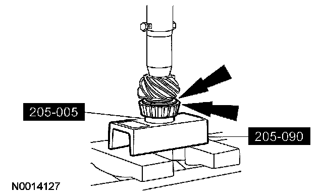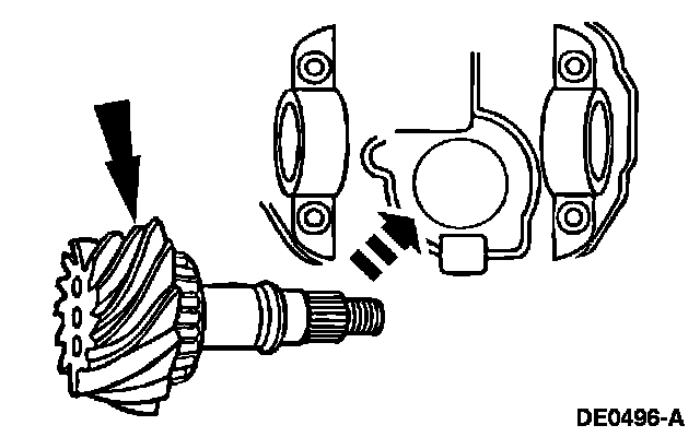 9. CAUTION: Use the same drive pinion bearings and the drive pinion bearing adjustment shim from the drive pinion bearing adjustment shim selection procedure for final assembly.
