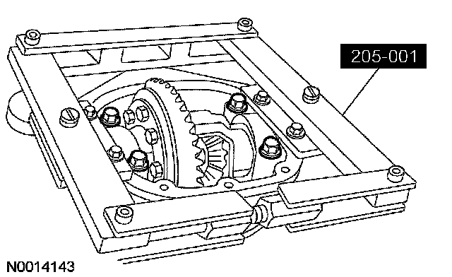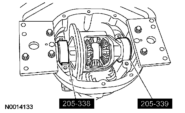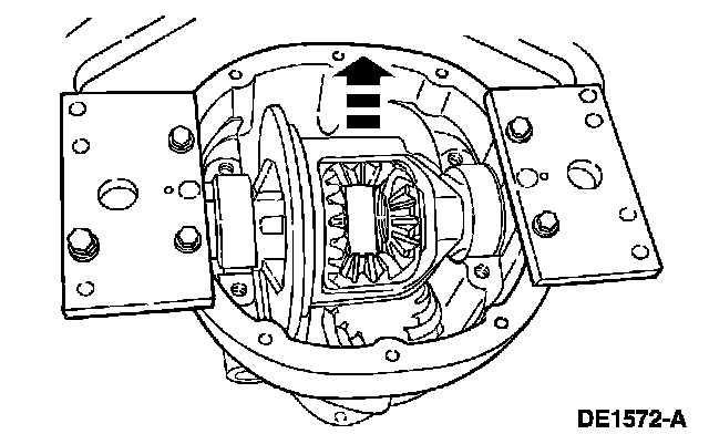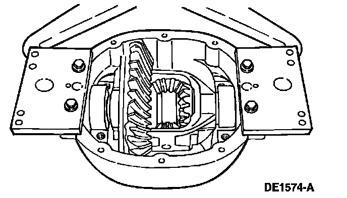 38. NOTE: Hand-tighten the differential bearing cap bolts prior to releasing the carrier spreader.