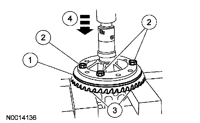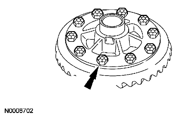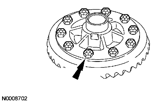 29. Remove the ring gear bolts. Apply stud and bearing mount to the ring gear bolt threads, and reinstall the ring gear bolts.