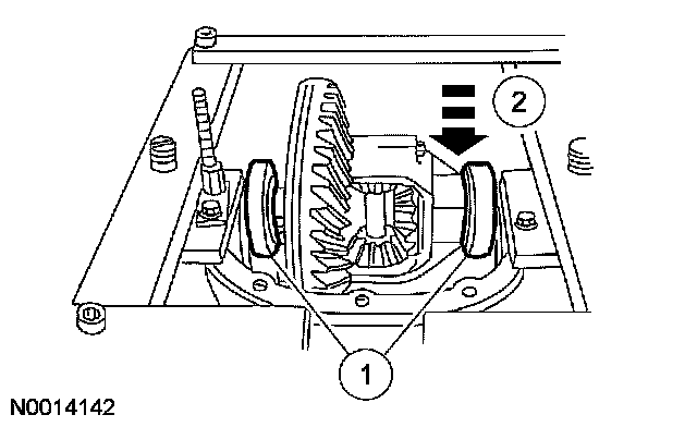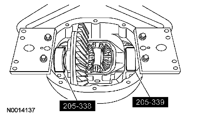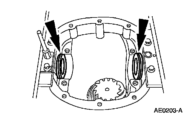 NOTE: Select the correct size differential bearing shims by completing the differential bearing shim selection chart.