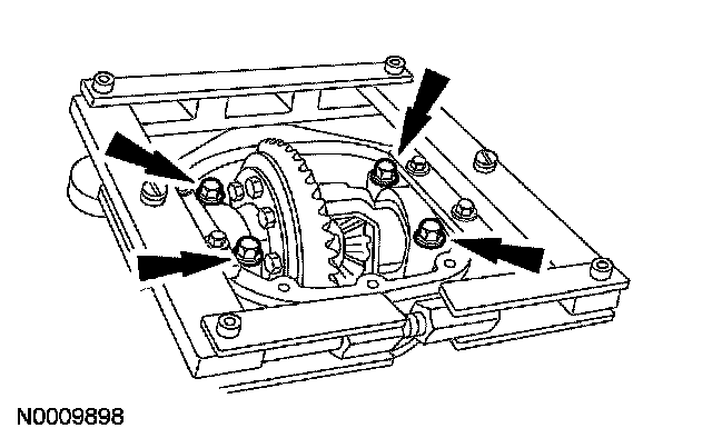 27. NOTE: The ring gear bolts retaining the differential ring gear to the differential assembly may interfere while carrying out this procedure. If so, remove 3 to 5 ring gear bolts to provide clearance.