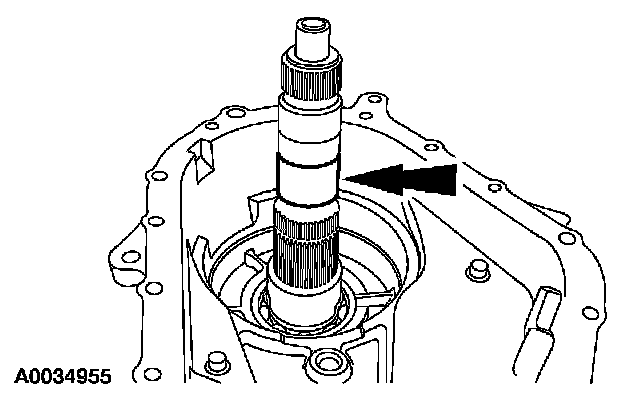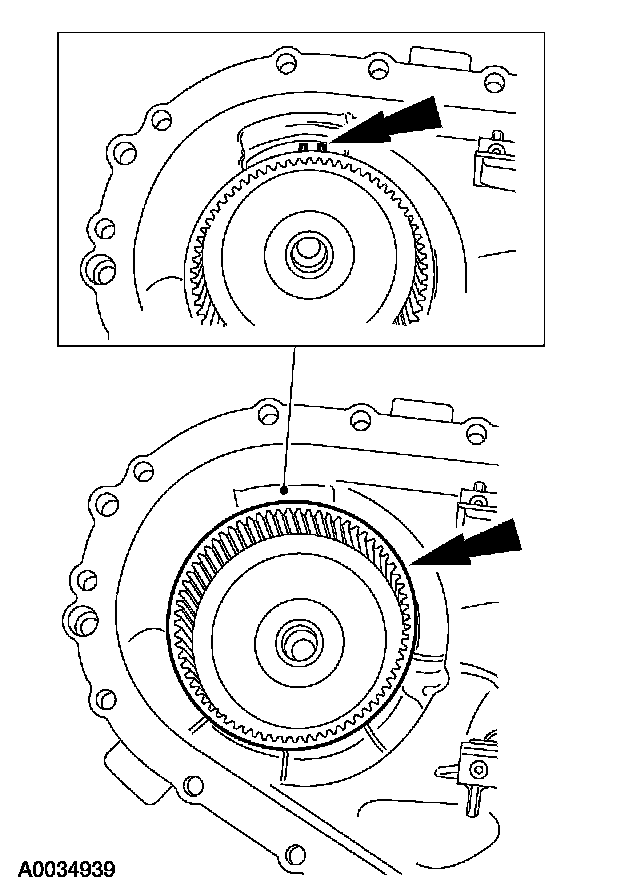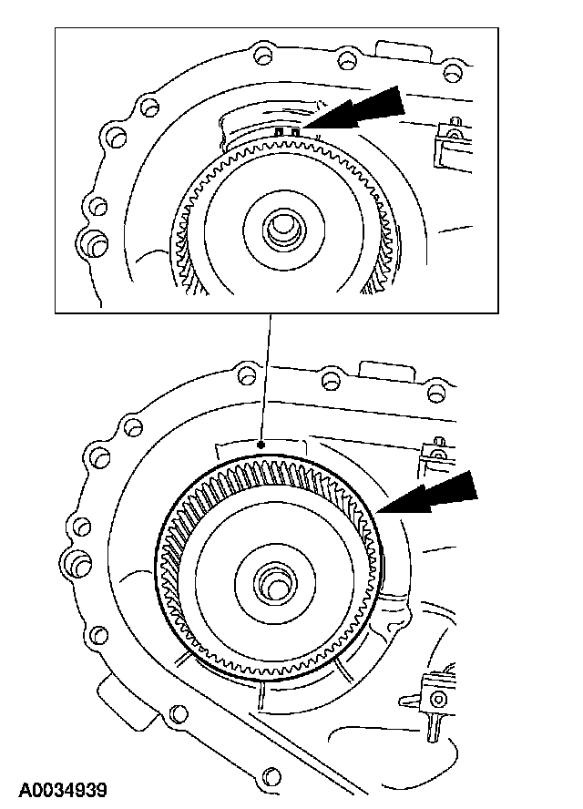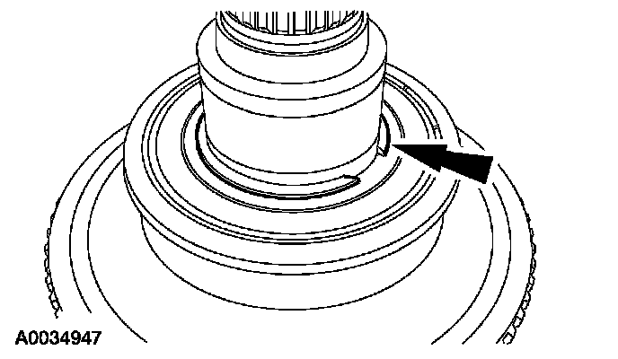 ^ Expand the snap ring. Install the upper output shaft and the ring gear.
