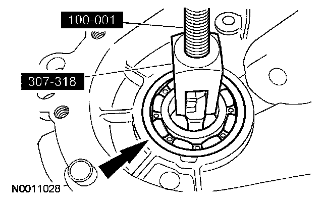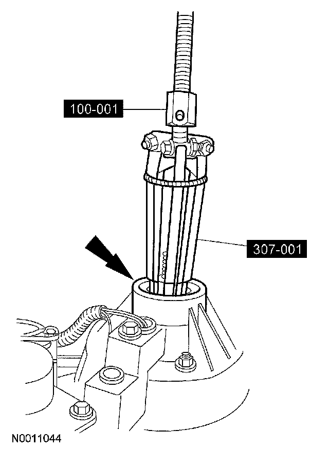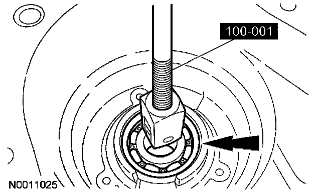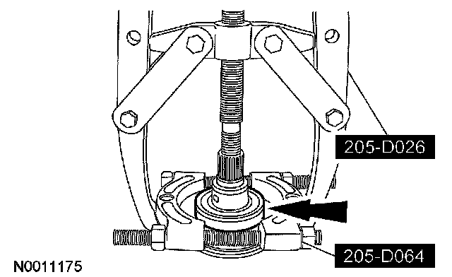 32. Using the special tools, remove and discard the front output shaft yoke-to-flange seal.