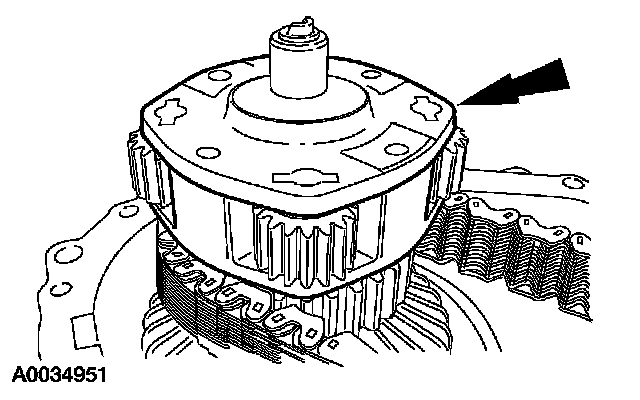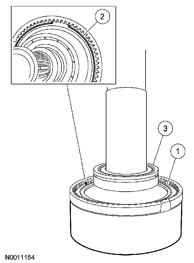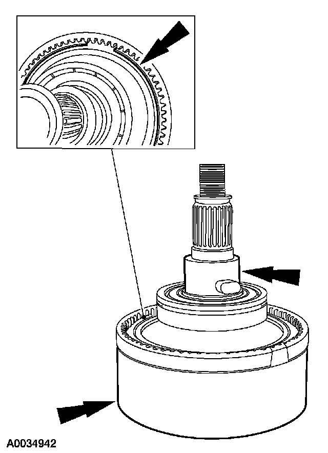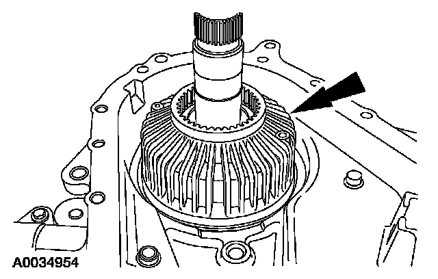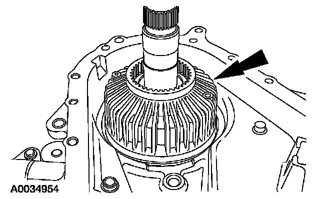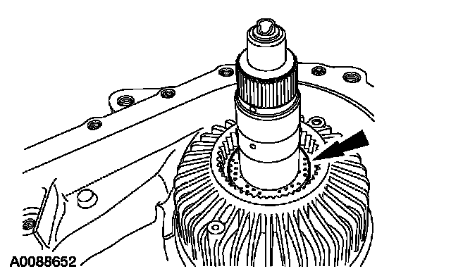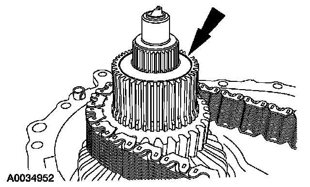 Align the blind spline on the lower drive sprocket with the narrow spline on the overdrive sun gear.