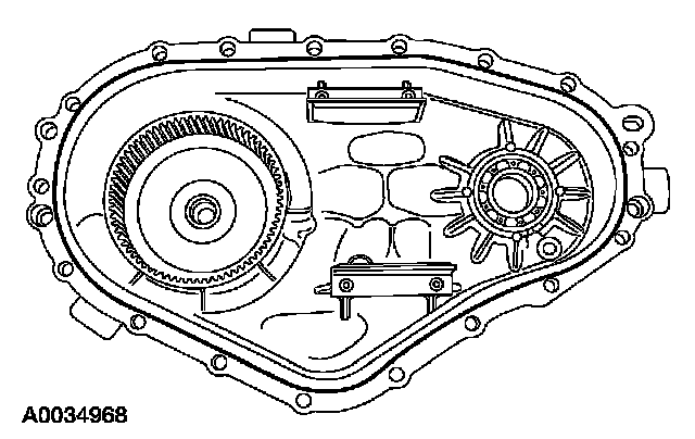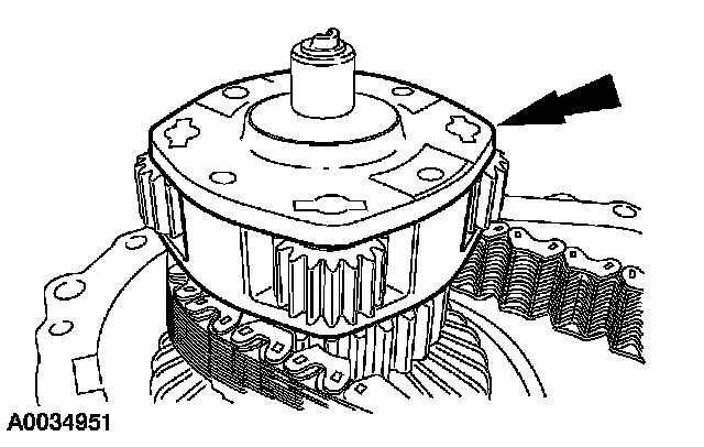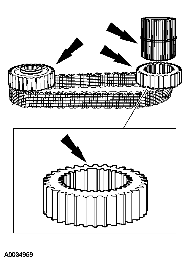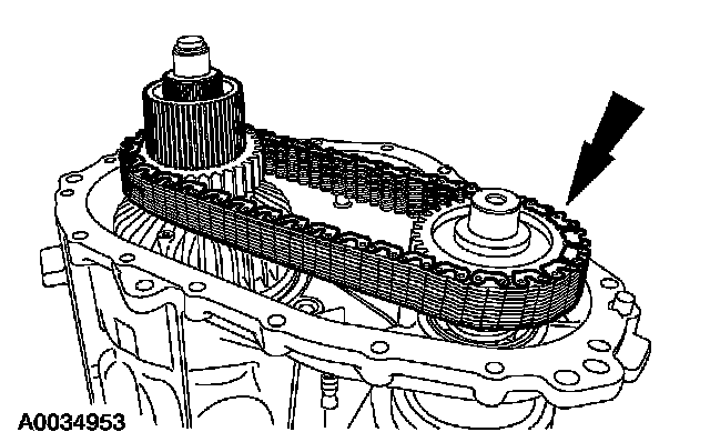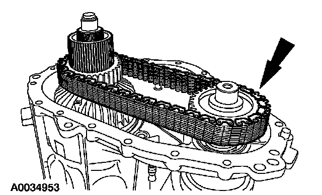 13. Install the overdrive sun gear, the upper and lower drive sprockets and the drive chain.