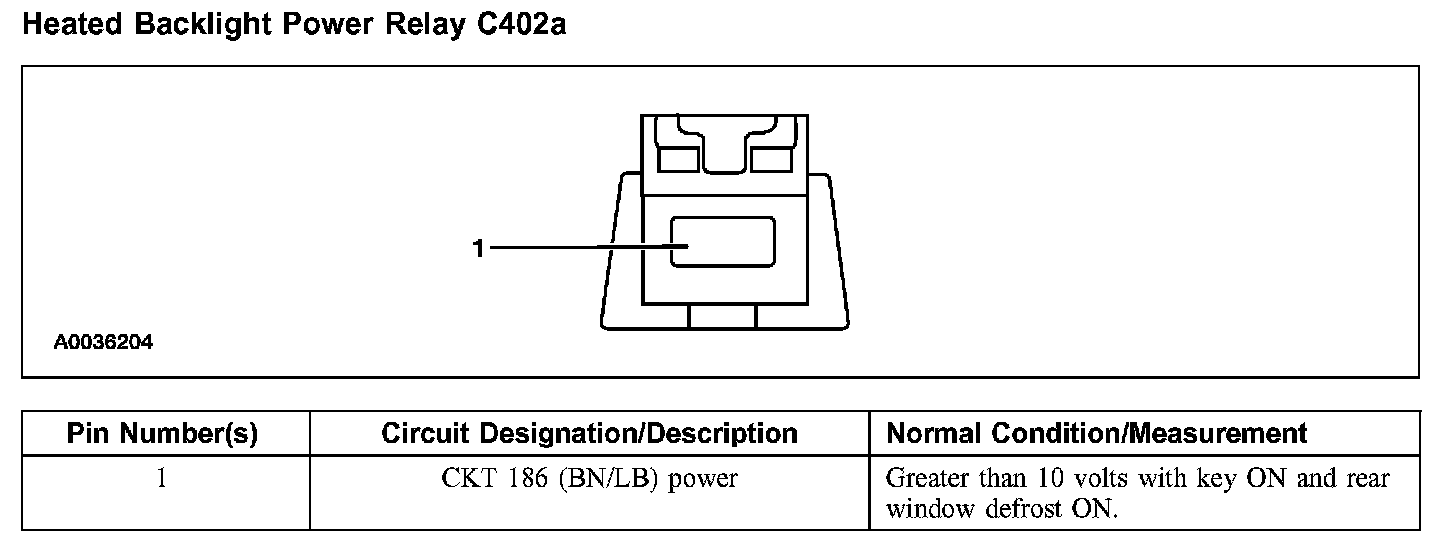 Heated Backlight Power Relay C402a:
