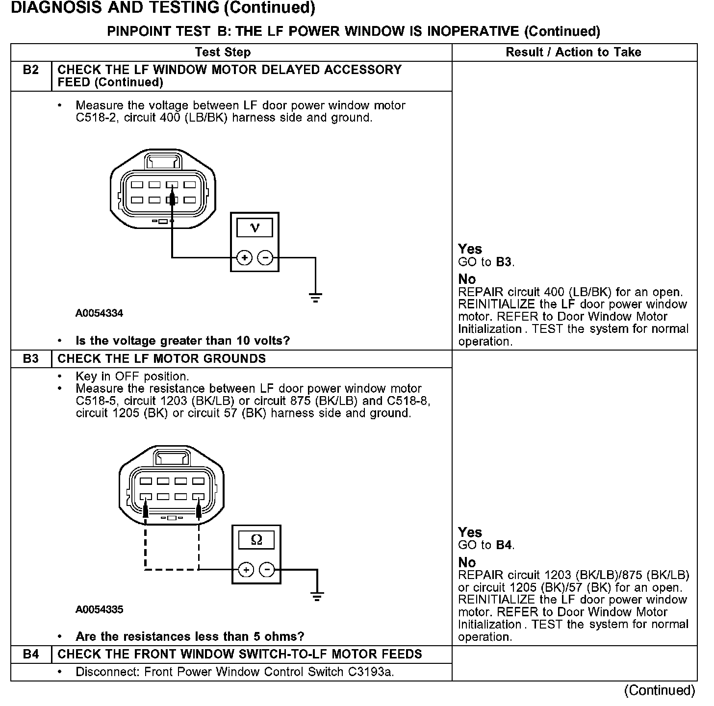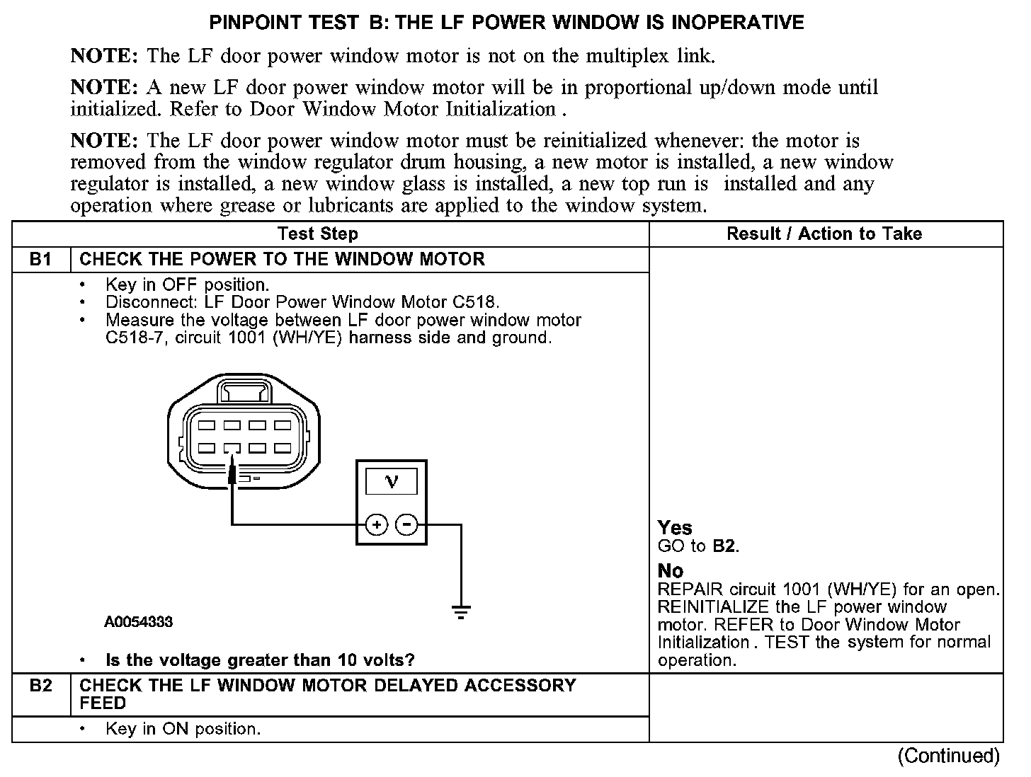 PINPOINT TEST B: THE LF POWER WINDOW IS INOPERATIVEB1-B2: