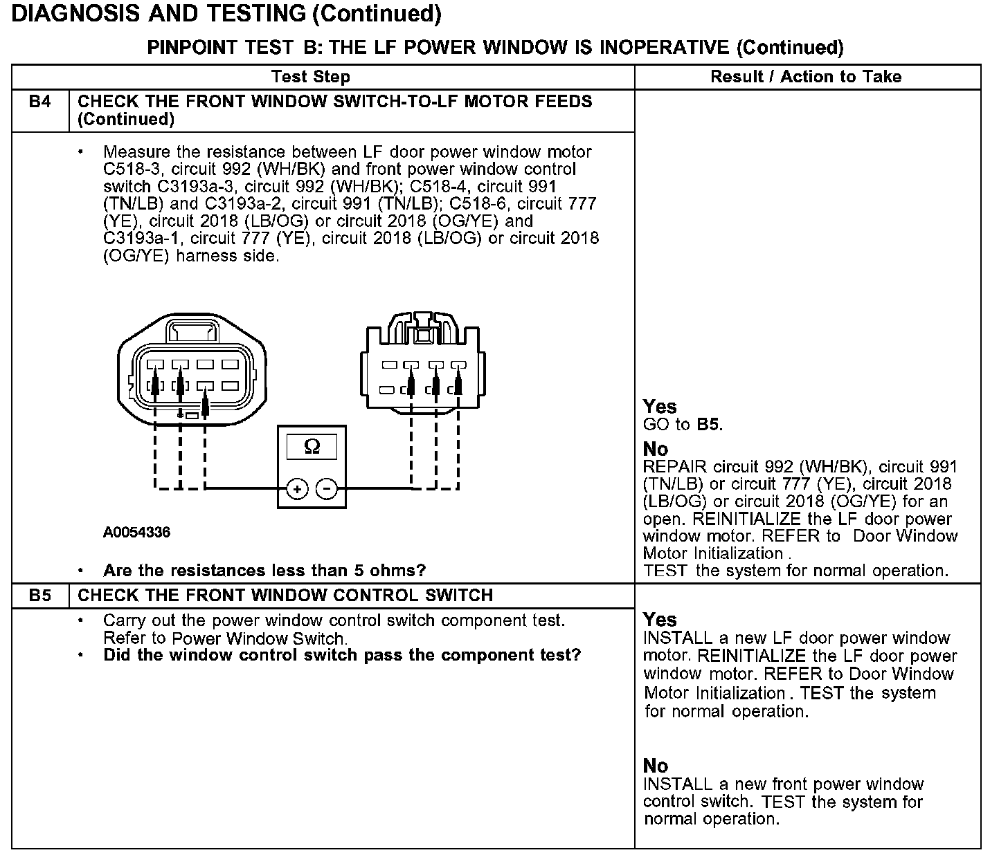 Test B: The LF Power Window Is Inoperative