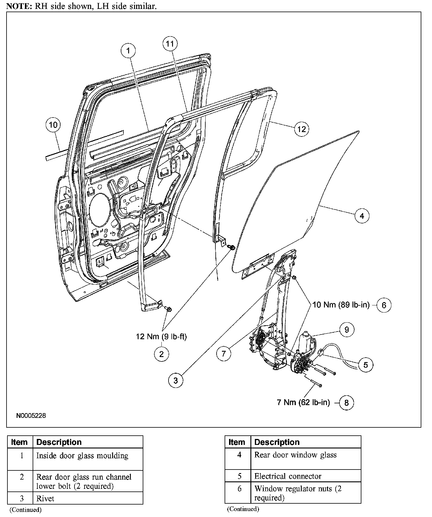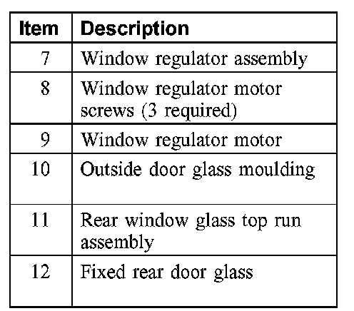 Rear Door Glass, Frames and Mechanisms - Exploded View