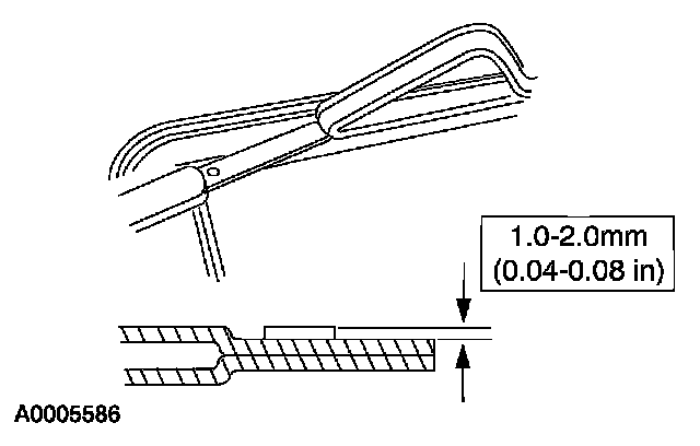 1. Trim the remaining urethane adhesive on the pinch weld to within specification. The surface should be smooth and free of cuts and contamination.