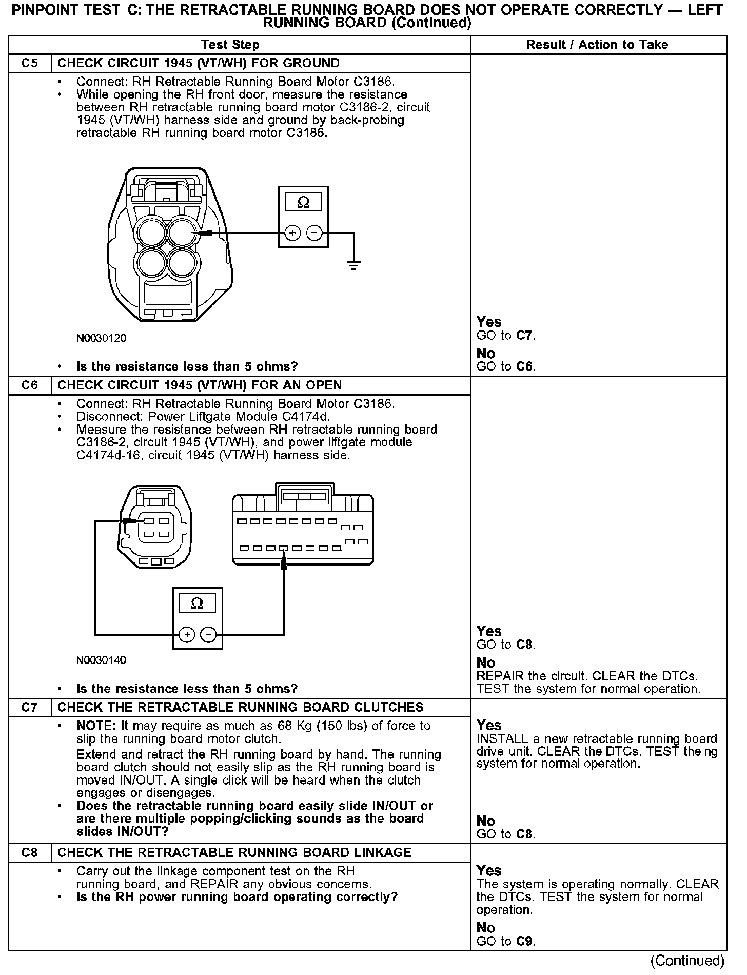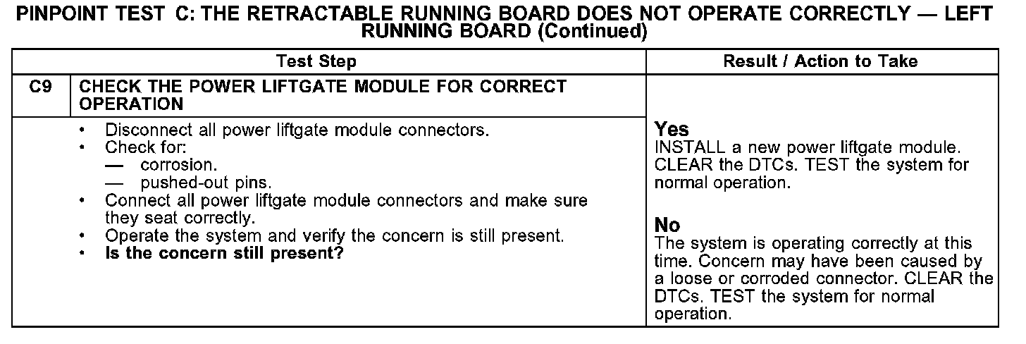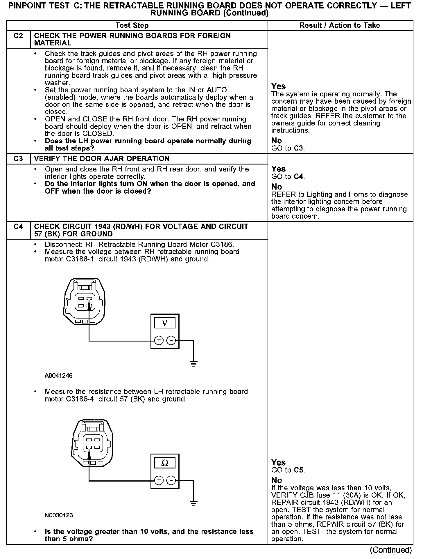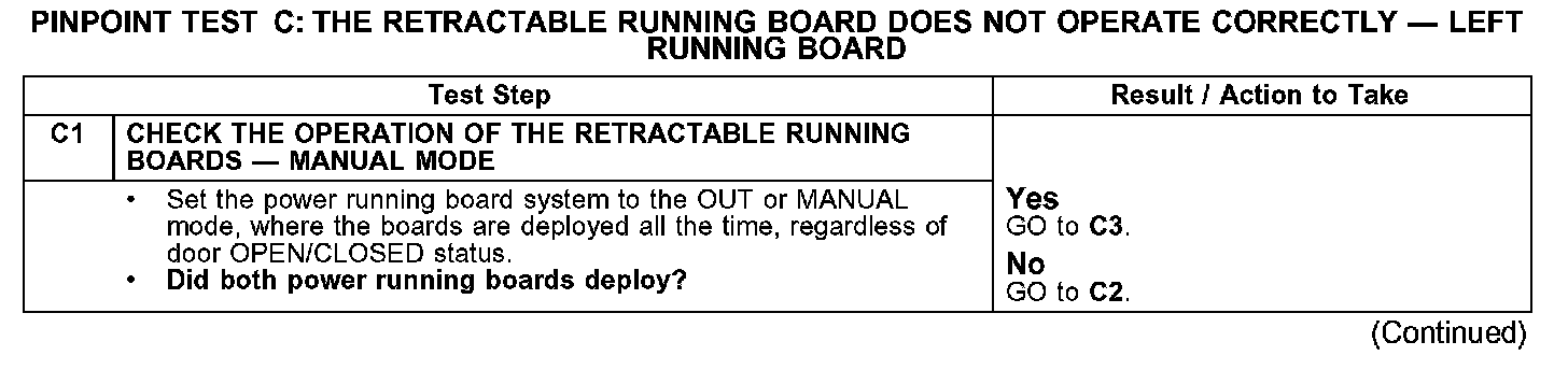 PINPOINT TEST C: THE RETRACTABLE RUNNING BOARD DOES NOT OPERATE CORRECTLY - RIGHT RUNNING BOARDC1: