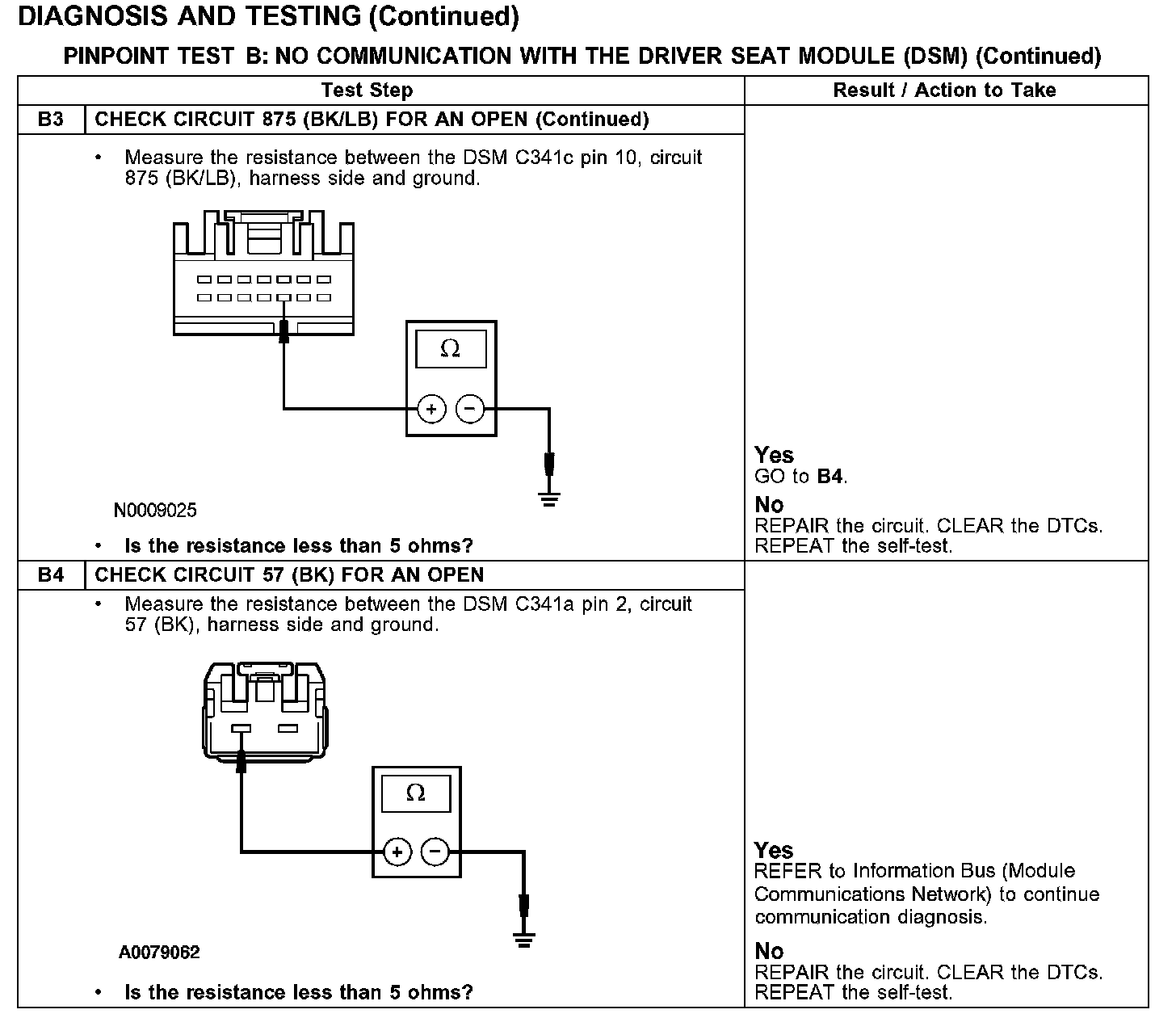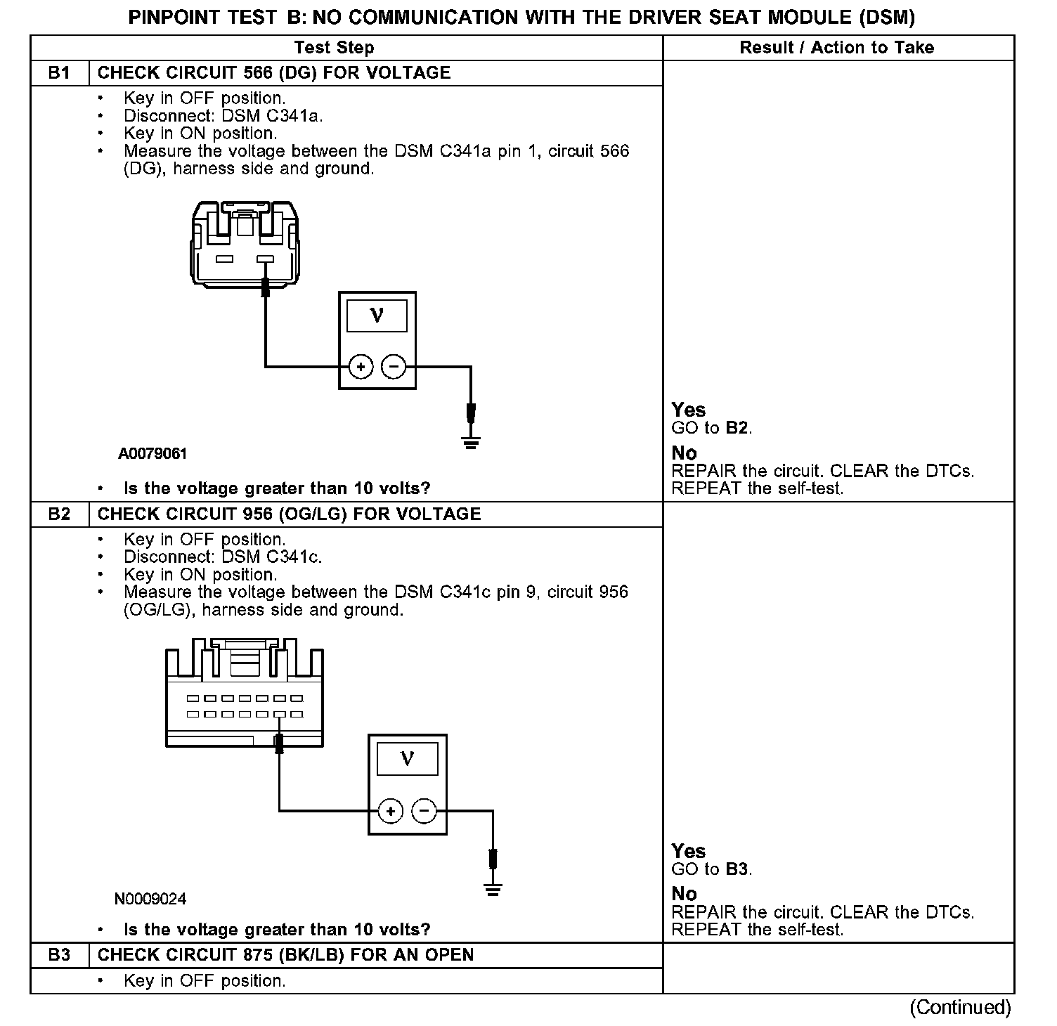 PINPOINT TEST B: NO COMMUNICATION WITH THE DRIVER SEAT MODULE (DSM)