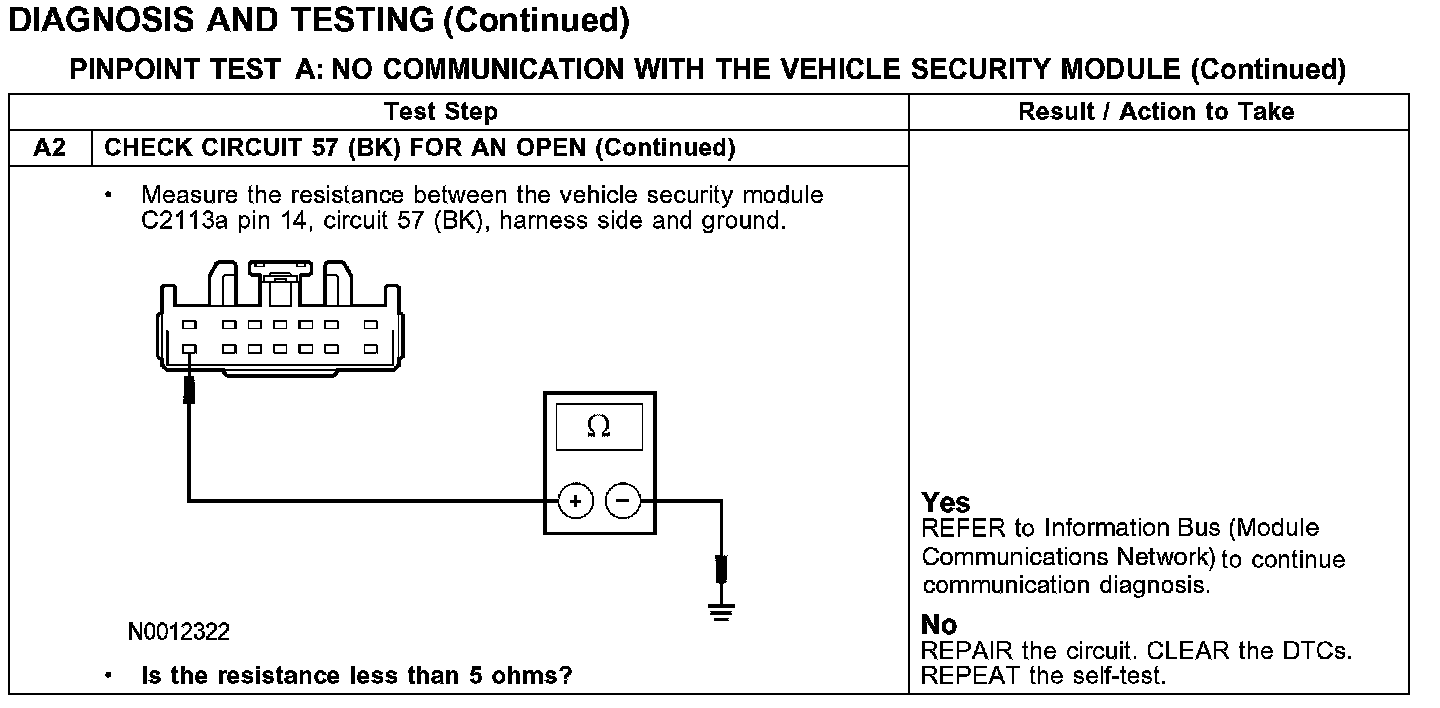 PINPOINT TEST A: NO COMMUNICATION WITH THE VEHICLE SECURITY MODULE