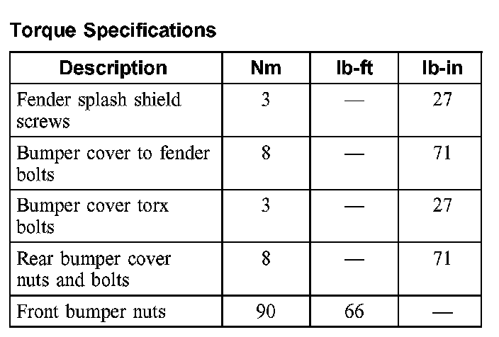 Torque Specifications: