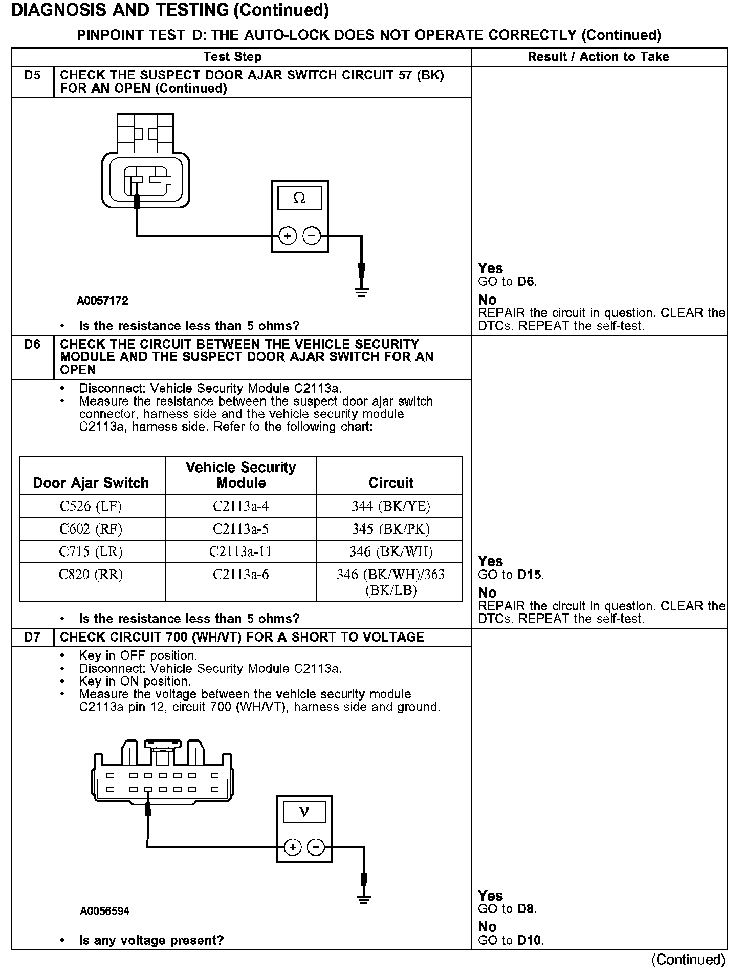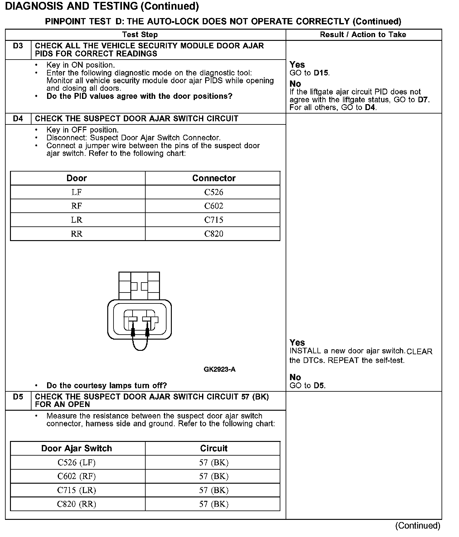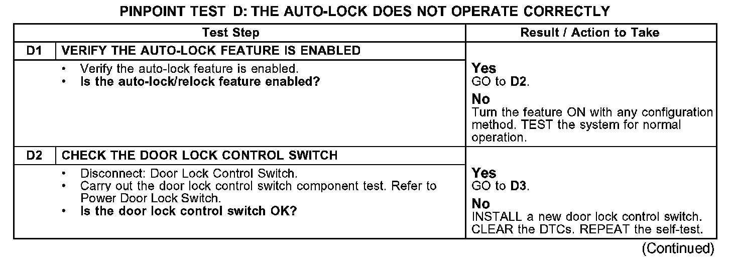 PINPOINT TEST D: THE AUTO-LOCK DOES NOT OPERATE CORRECTLY