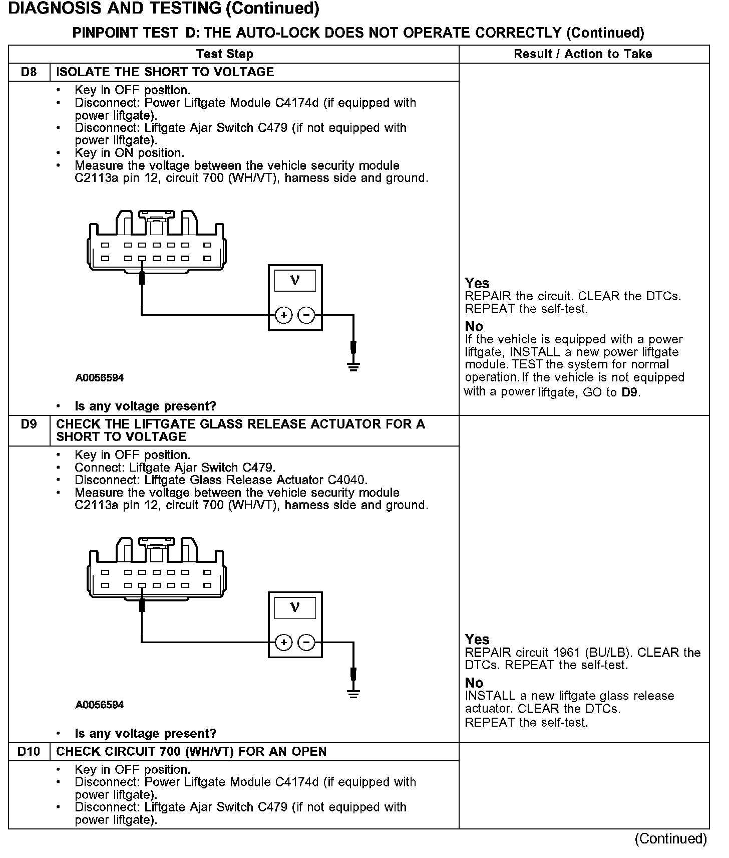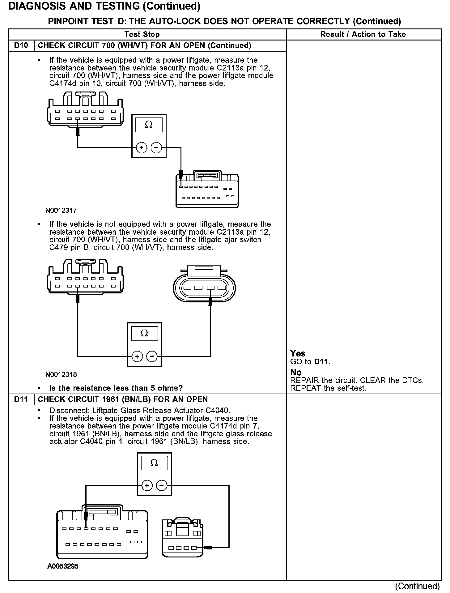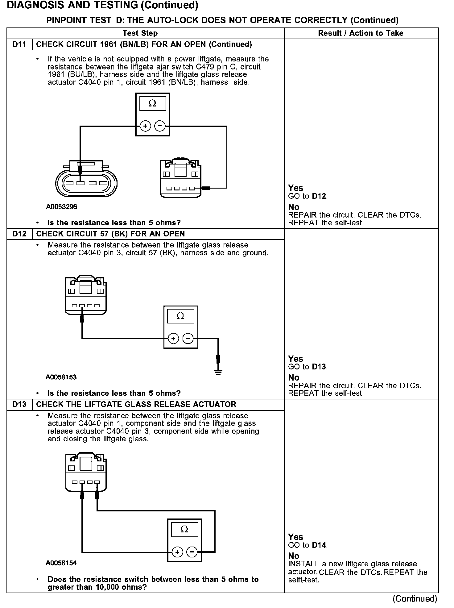 PINPOINT TEST D: THE AUTO-LOCK DOES NOT OPERATE CORRECTLY