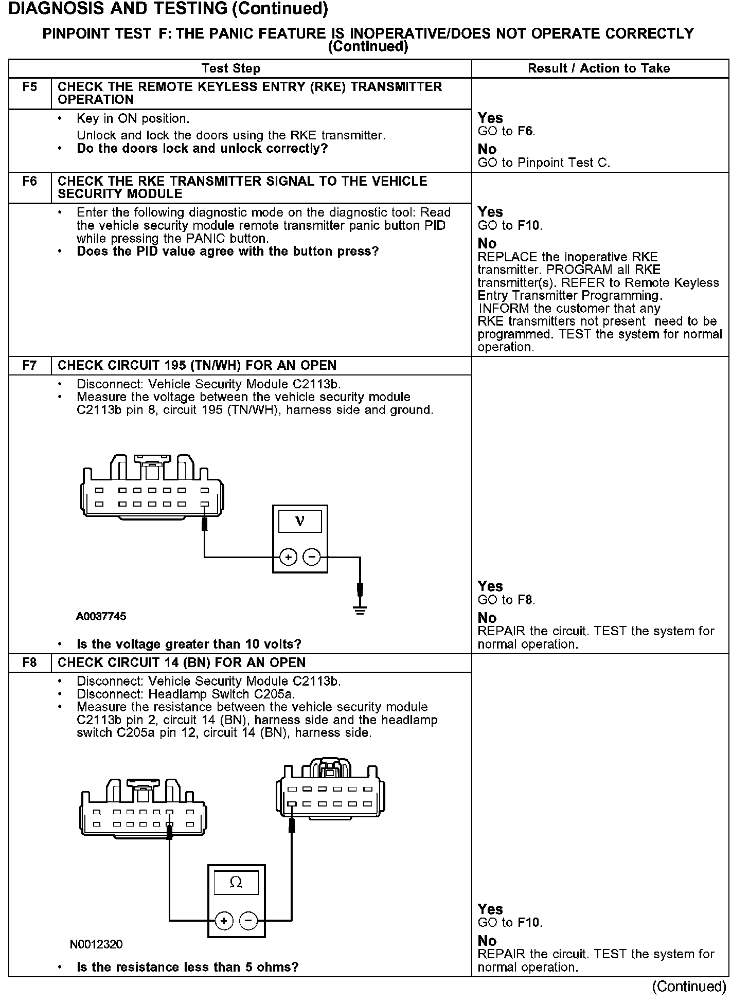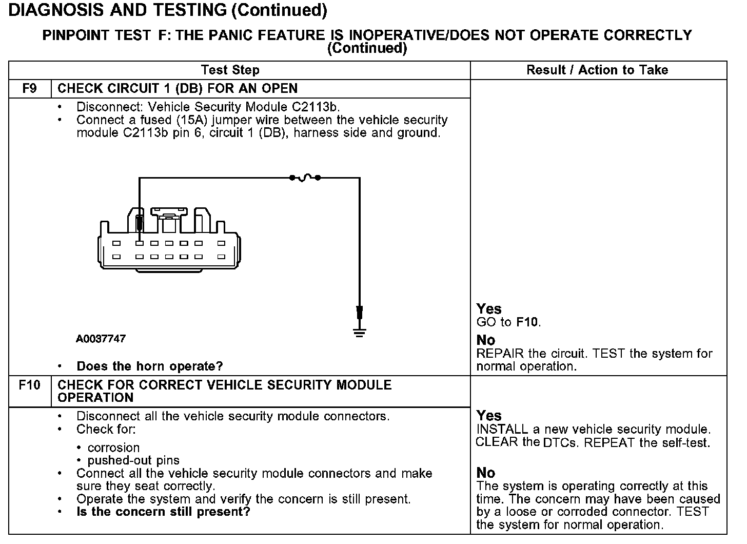 PINPOINT TEST F: THE PANIC FEATURE IS INOPERATIVE/DOES NOT OPERATE CORRECTLY