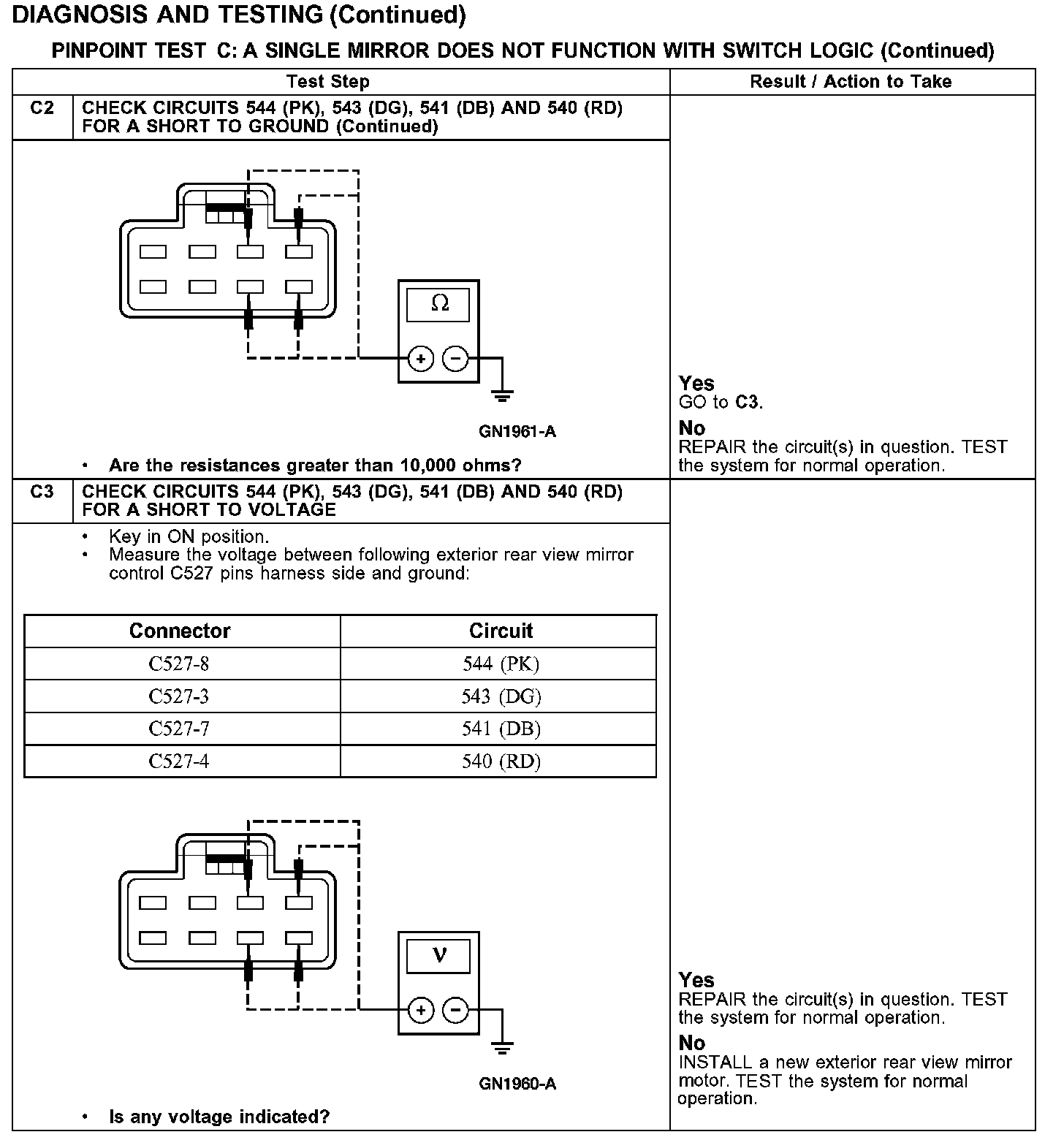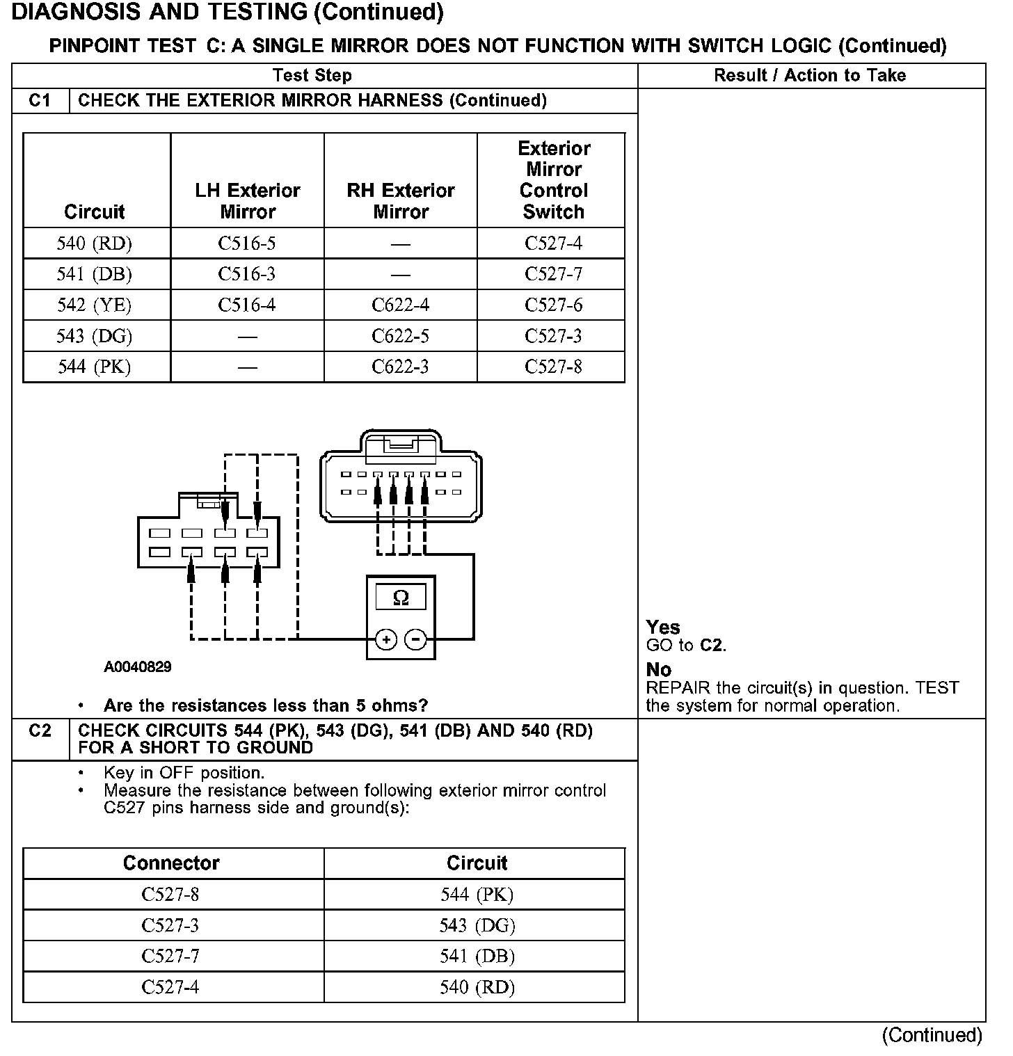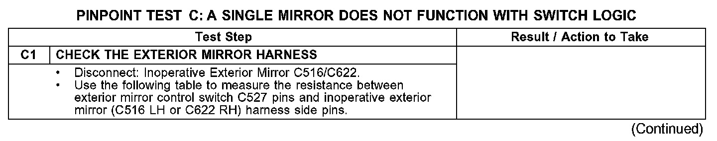 PINPOINT TEST C: A SINGLE MIRROR DOES NOT FUNCTION WITH SWITCH LOGIC