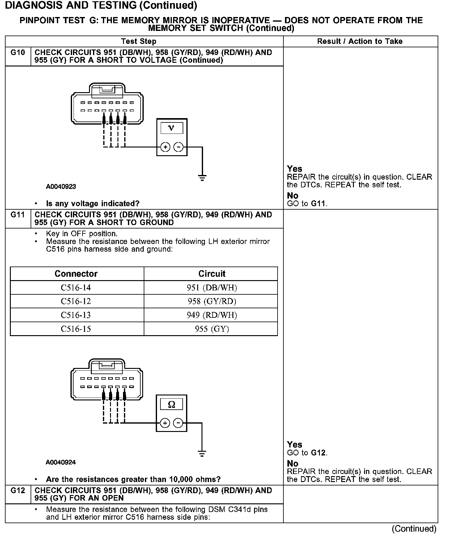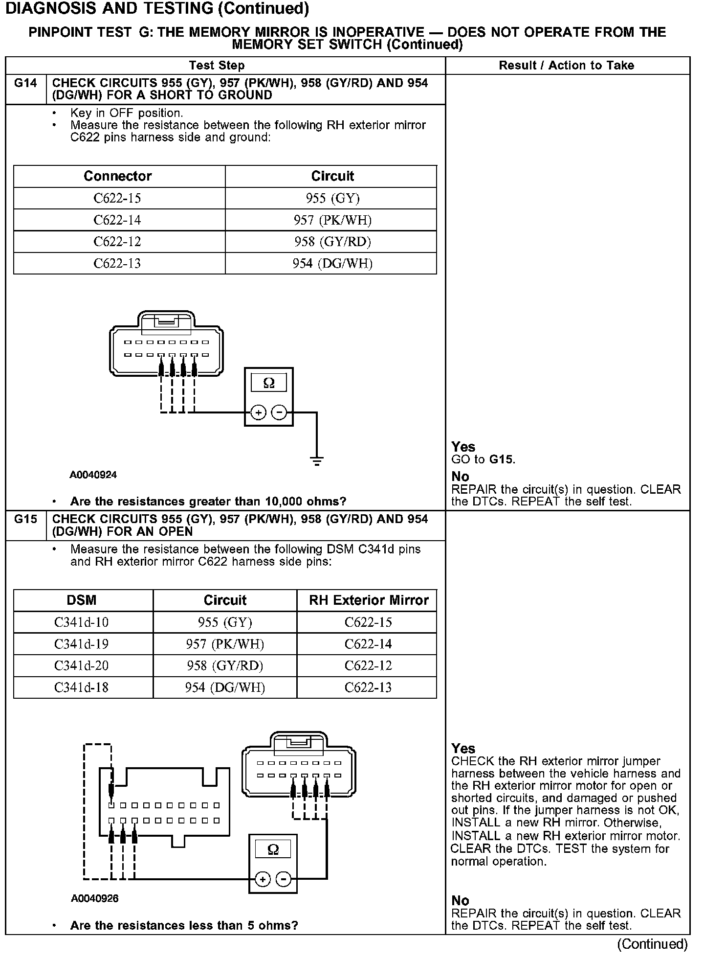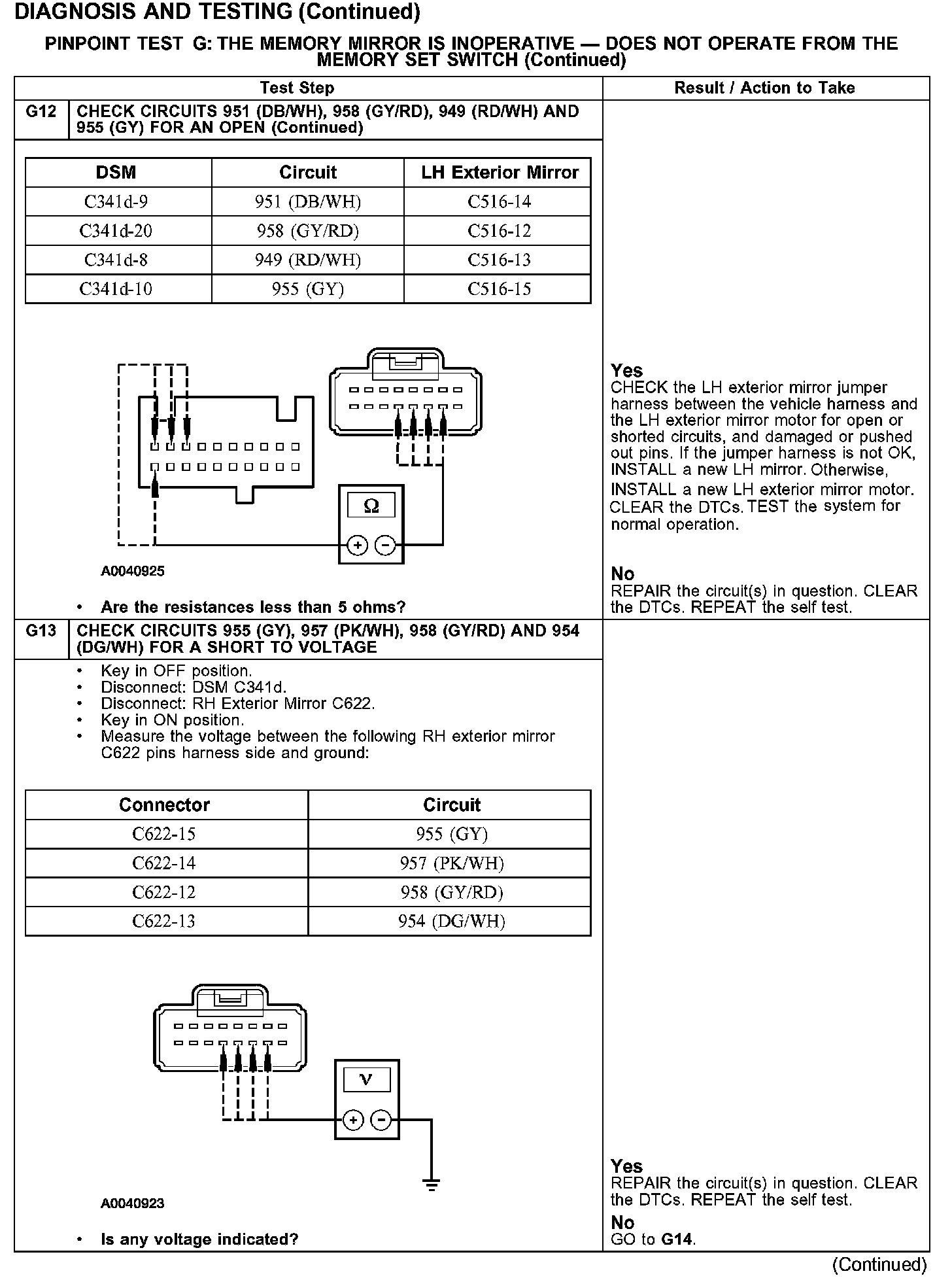 PINPOINT TEST G: THE MEMORY MIRROR IS INOPERATIVE - DOES NOT OPERATE FROM THE MEMORY SET SWITCH