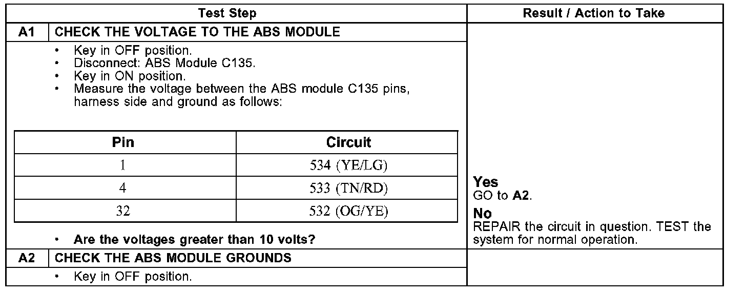 Test A: No Communication With the Anti-Lock Brake System (ABS) Module