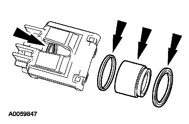 5. NOTE: Do not hone the cylinder bore. Caliper pistons are not available for honed cylinder bores. If the rear disc brake caliper cylinder bore or piston is excessively scored or corroded, install a new rear disc brake caliper.