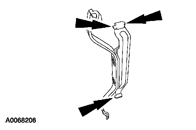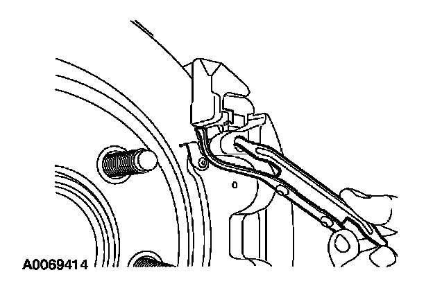 ^ Apply force at the center of the anchor housing spring and pull outward at the bottom of the anchor housing spring to remove it from the lower brake caliper cavity.