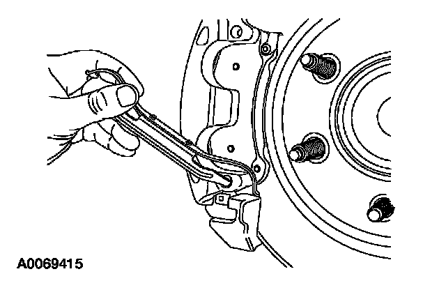 2. Twist tab into the brake caliper cavity (LH side-upper brake caliper cavity/RH side-lower brake caliper cavity).