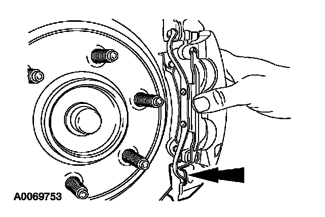 6. Rotate the spring upward then remove it from the brake caliper.