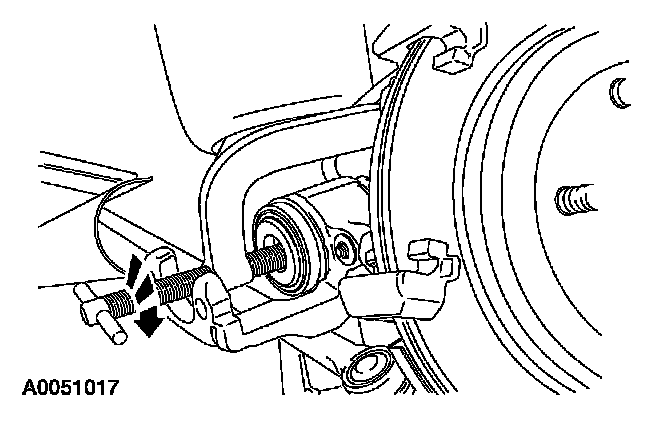 6. CAUTION: Do not allow the brake caliper to hang by the flexible brake hose.