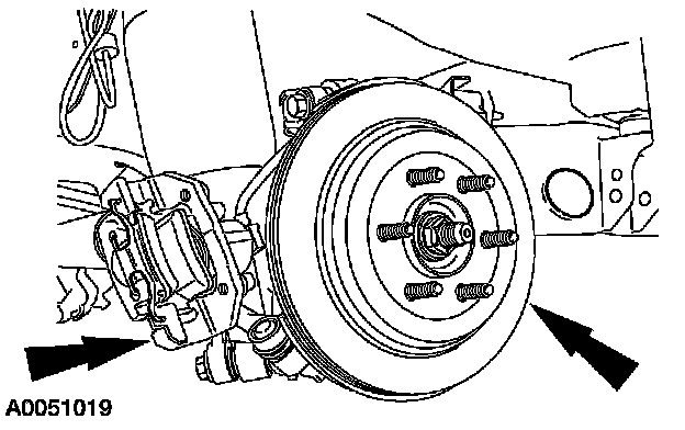 NOTE: Inspect the brake disc. If it is scored, it must be resurfaced. Also, resurface the rear brake disc if a test drive has identified vibration transmitted through the steering wheel, seat or brake pedal while braking.