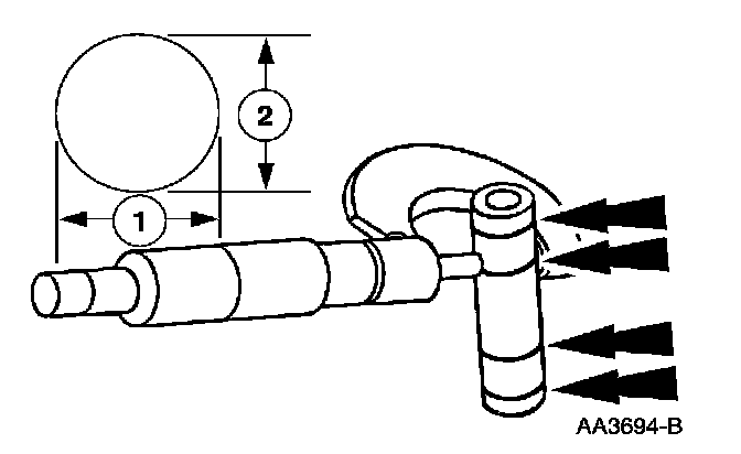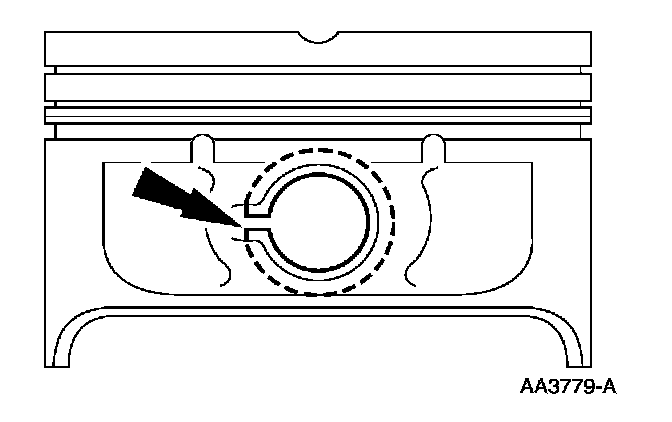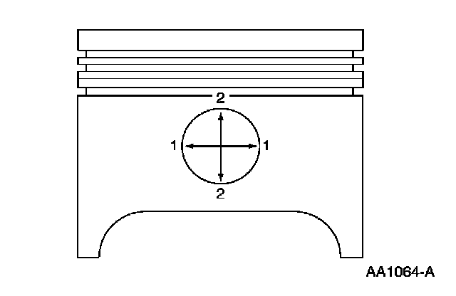 1. Measure the piston pin diameter in two directions at the points shown. Verify the diameter is within specification.