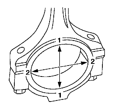1. Tighten the bolts to specification, then measure the bore in two directions. The difference is the connecting rod bore out-of-round. Verify the out-of-round is within specification.