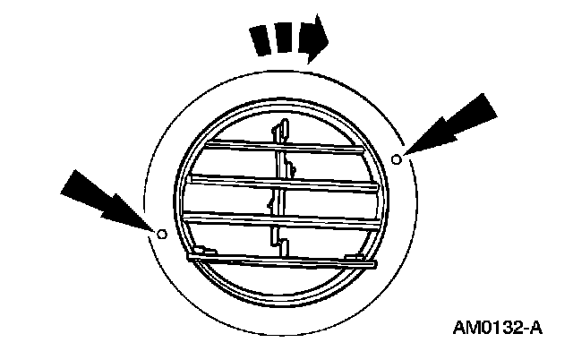 2. Rotate the A/C register with the removal tool to align the retaining ears with the clearance openings and remove the A/C register.