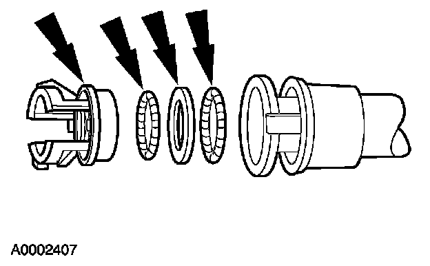 2. Install a new coupling retainer, spacer, and lubricated O-ring seals into the quick disconnect coupling housing.