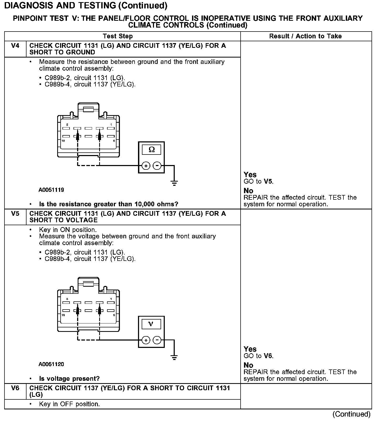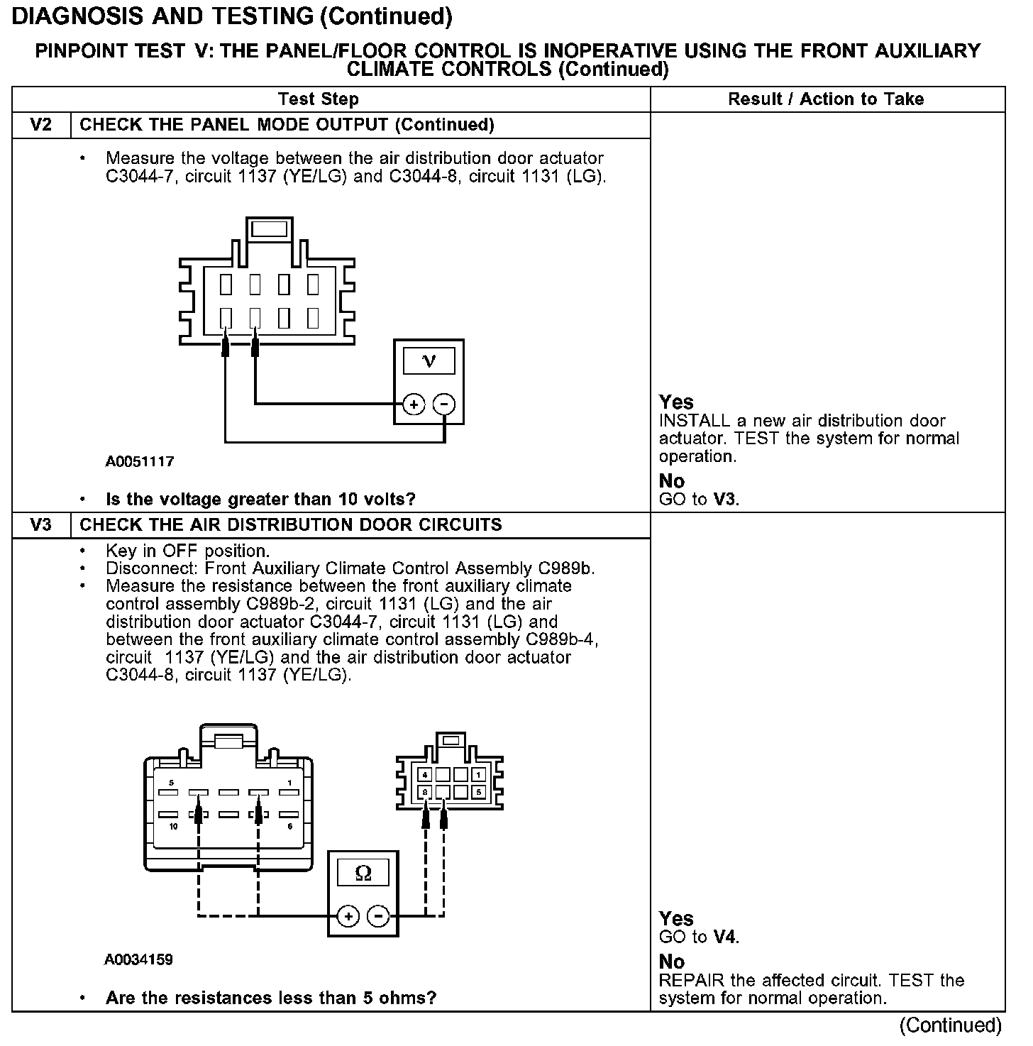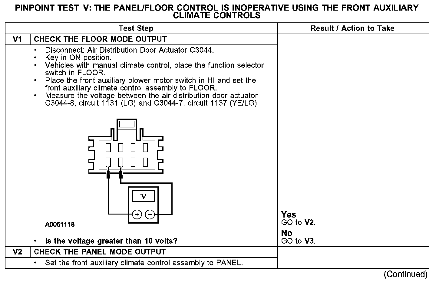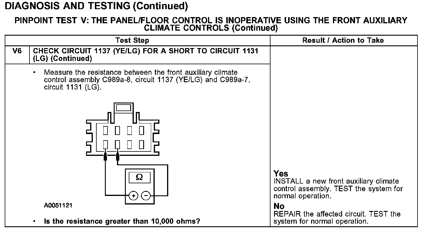 Test V: The Panel/Floor Control Is Inoperative Using the Front Auxiliary Climate Controls