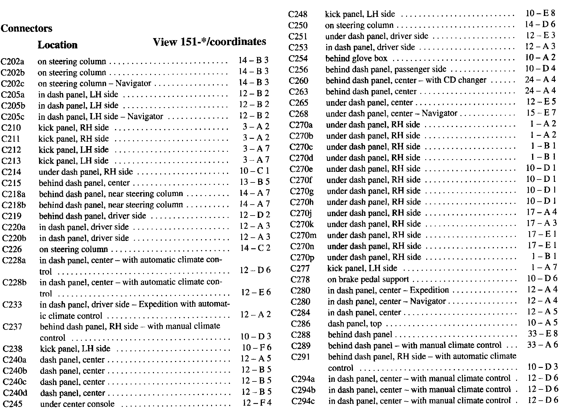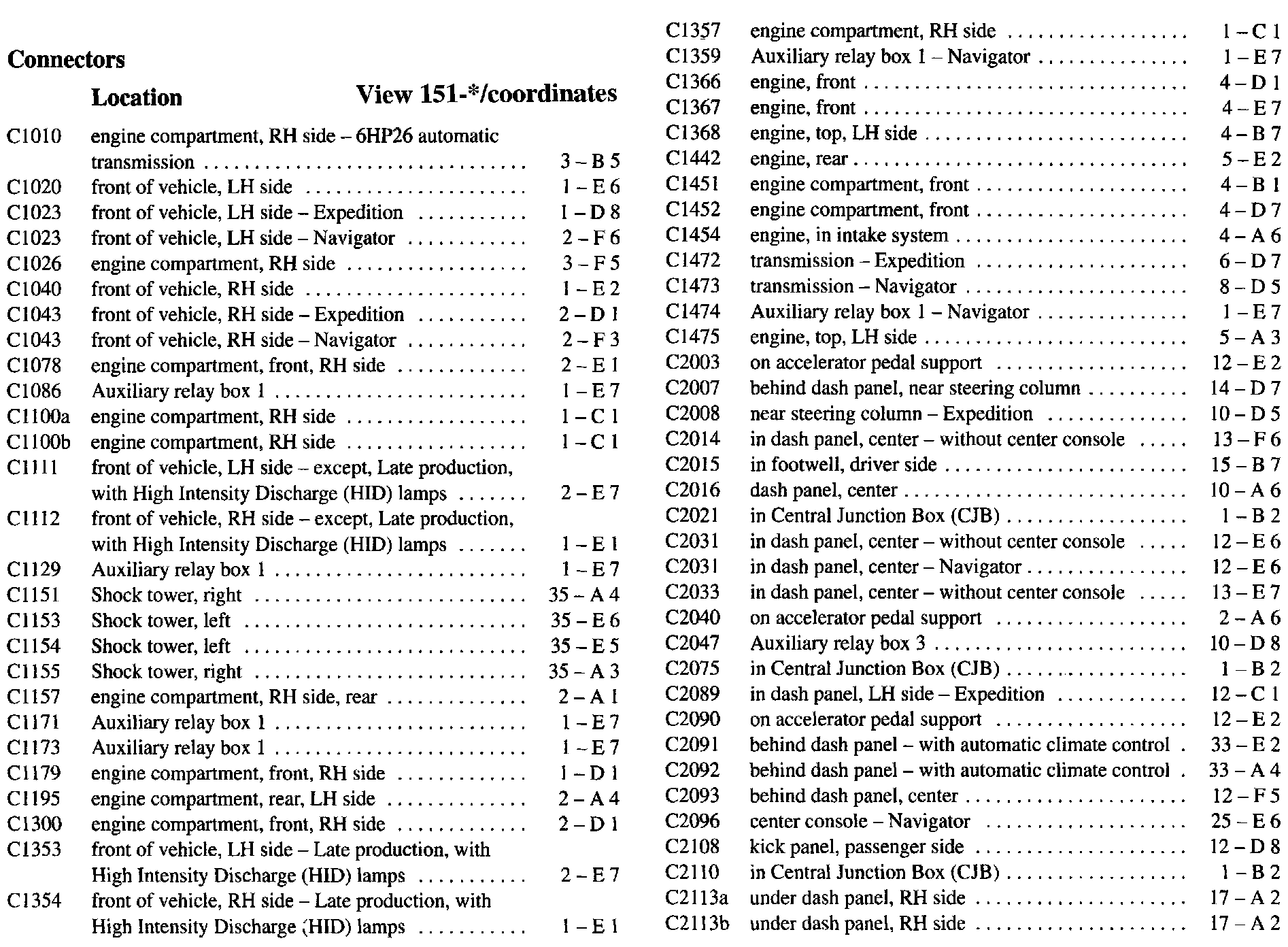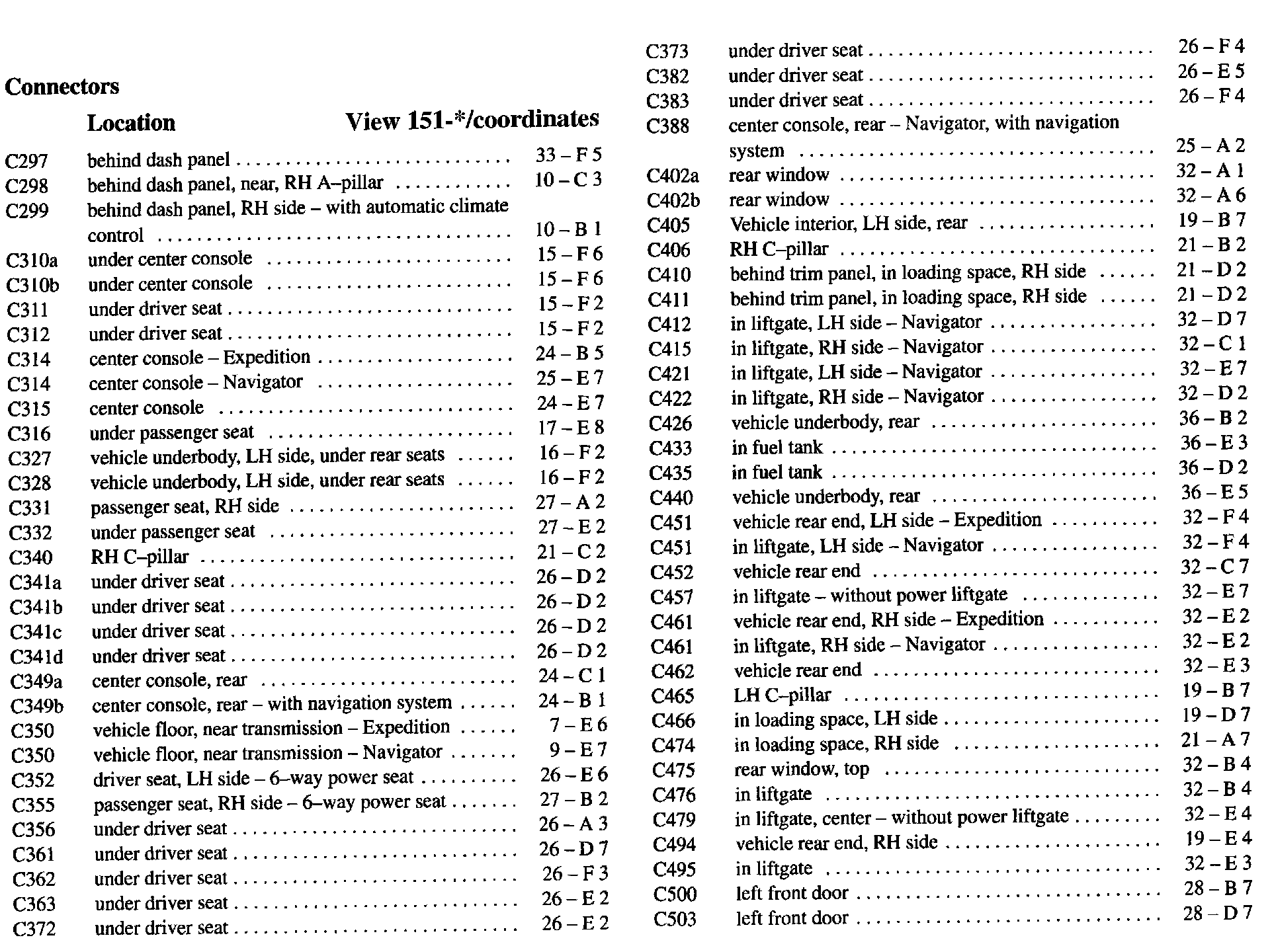 PLEASE NOTE: If a link on the Connector Location Index to a View is not provided, that means that the Connector and/or View in question does NOT apply to the vehicle model selected.