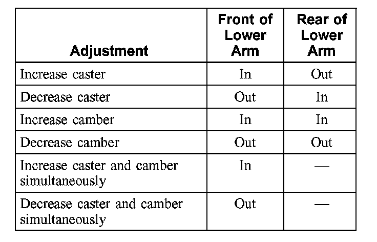 2. To adjust the caster and camber, refer to the above chart.