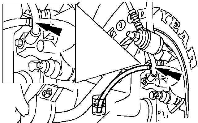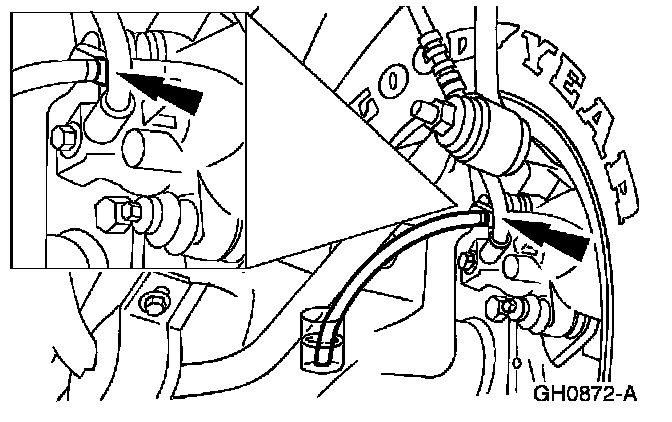 10. Repeat Steps 6, 7, 8, and 9 for the LH front disc brake caliper bleeder screw.