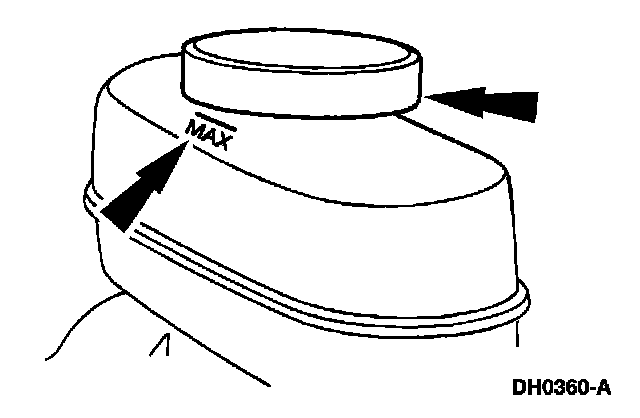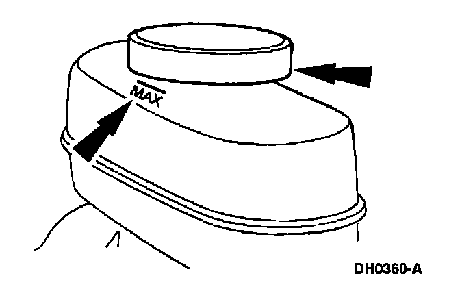 1. Clean all dirt from and remove the brake master cylinder filler cap and fill the brake master cylinder reservoir with the specified brake fluid.