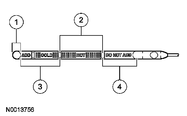 NOTE: If vehicle has been operated for an extended period of time at highway speeds, in city traffic, in hot weather or when pulling a trailer, the fluid needs to cool down to obtain an accurate reading.