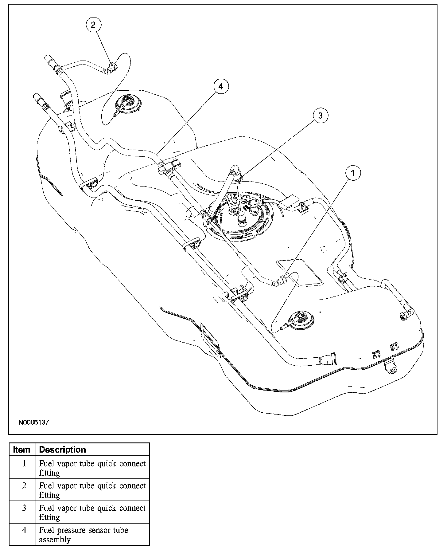 3. Disconnect the fuel vapor tube quick connect fittings from the fuel pump module.