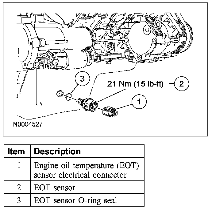 4. Disconnect the engine oil temperature (EOT) sensor electrical connector.